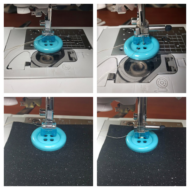 Now, to be completely honest, I have done this stitch with the feed dogs still engaged and my buttons came out just fine, but I have to suggest that you do as I say and not as I do on this one, because I don’t know what could happen if we don’t follow the directions. Let’s try to be safe rather than sorry.