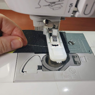 Please note that the buttonhole foot is going to move backward first!! That’s right, the feed dogs are going to move the fabric towards you first and then away from you. This is going to feel backward, believe me, I have had to unpick a few buttonholes because I forget about this. But you will get used to it, eventually.