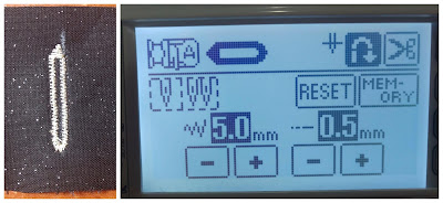 Unfortunately, neither of my machines has this kind of buttonhole and the only place I have even seen one done is on YouTube. And I have this very deeply ingrained fear of plagiarism (thank you BA in English) so I would rather turn you towards one of those great tutorials rather then parrot what they have said. I am not going to leave you with a link just in case Eunoia would like to come up with their own tutorial. Just know that you are basically going to get the exact same results you will just have to move your needle to have it in the correct place while sewing each of the 4 lines that will create the buttonhole. This does not look to be a complicated process, especially with good marking (see, it really does come in handy!), just practice several times before doing it on your actual garment.