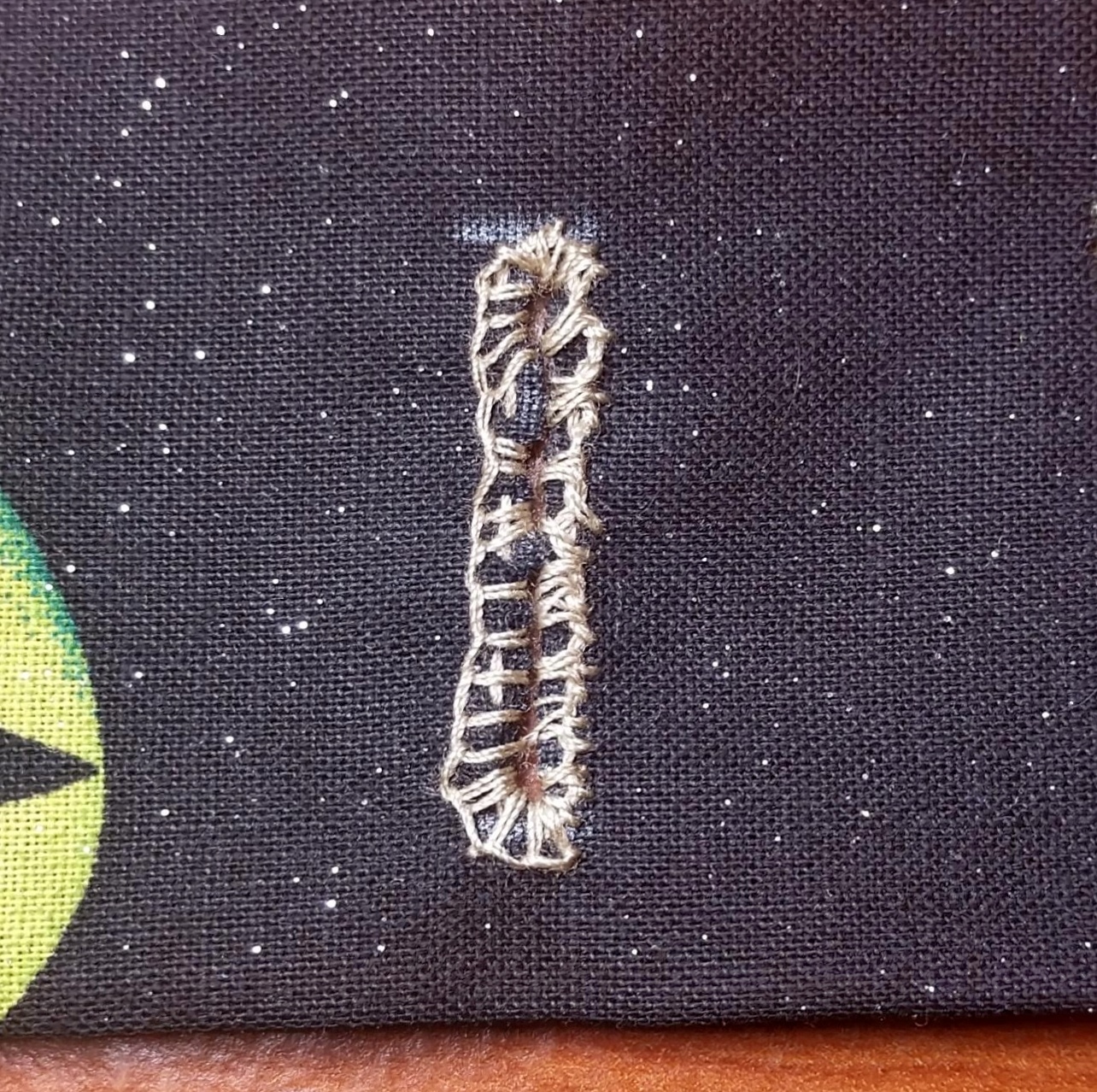 Please don’t laugh so hard that you hurt yourself with this next photo. My blanket stitch went a little crazy on me on the one side. Its a really good thing this one is just for an example and not going on an actual garment, I would be unpicking it so fast!