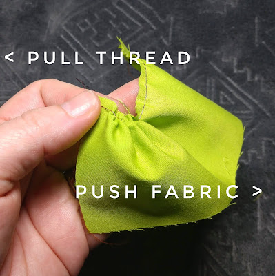 Sometimes you might even need to work the gathers all the way to the end of the fabric before the thread pulls easy again, but try not to pull the thread out of the fabric at that far end.