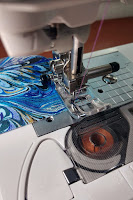This little foot is pretty fascinating because it uses its shape to gather fabric and can even attach and gather at the same time! The amount of gathering, as determined previously, is adjusted by the tension. The fabric being gathered should be placed right side up and slid completely underneath the gathering foot, the fabric that will not be gathered should be placed right side down in the slot and the sewing machine will gather the bottom fabric and stitch it to the top fabric all in one move! How awesome is that?!? This is seriously cool!