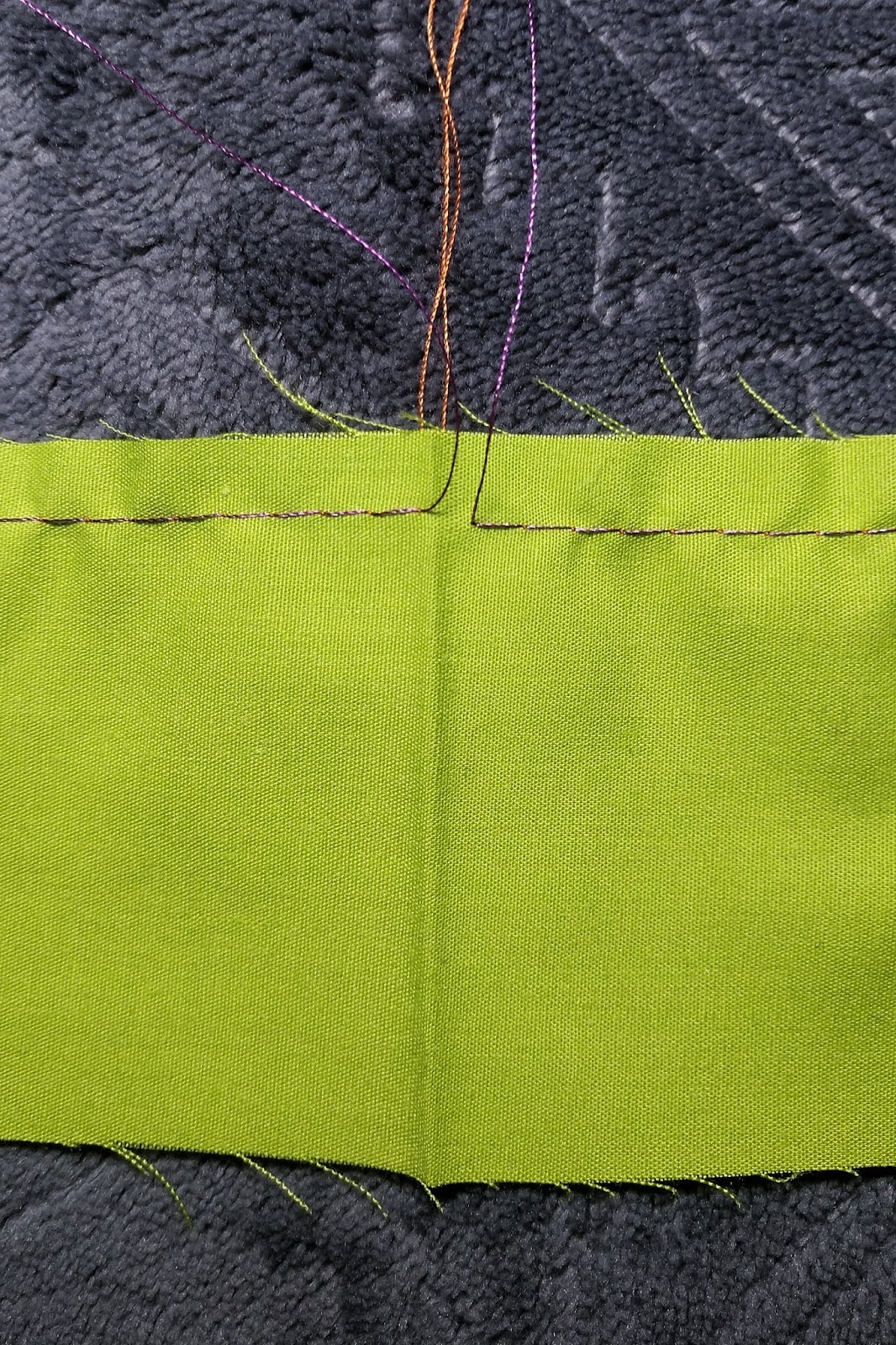 You’ll notice that I’m using a different color thread in my bobbin then I in the top. That’s just to be able to differentiate between them more easily. When the need for the basting stitches is over they can just be unpicked, so it really doesn’t make a difference if they match the fabric or not. Really, it’s probably going to be easier to pick out the bobbin thread from the top thread this way.
