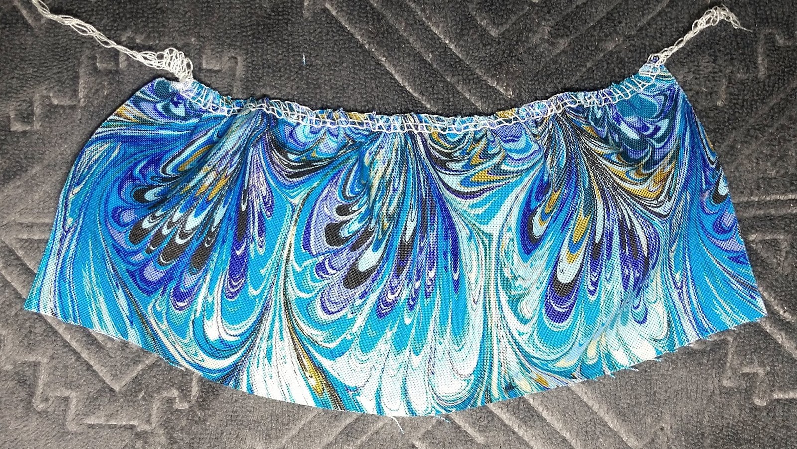 When it’s time to gather, just hold onto the knotted end (mine kept pulling through so I clipped it) and pull the floss gently and the fabric will gather like magic! Little tip here, you absolutely can make two rows of zigzag stitches!! It really does seem like the more rows the nicer looking the gathers, so if there is plenty of room in the seam allowance for two rows of zigzag and floss, by all means, use 2 rows, if that’s what you want! There are no gathering police to stop you! You just do you, my friend!