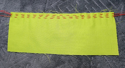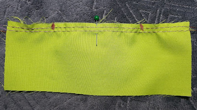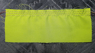 Okay, one more technique before we start talking about machine gathering (say what? Let the machine do all the gathering for me? Yes, yes, but we will get there, let me show you this one first!) Alright, okay, this is a fun way to gather, but it’s probably also the least used because it’s not quite as versatile as some of the others. We are going to use elastic for this one! But not just any elastic, you are going to want ¼ inch elastic, and something thin and very stretchy. A good way to tell if the elastic you have will work, just stretch it. Using the example of gathering an 8 inch piece of fabric to be 4 inches, make sure the 4 inches of elastic will stretch to the full 8 inch length of the fabric. If it does, perfect! If not, find another kind of elastic.