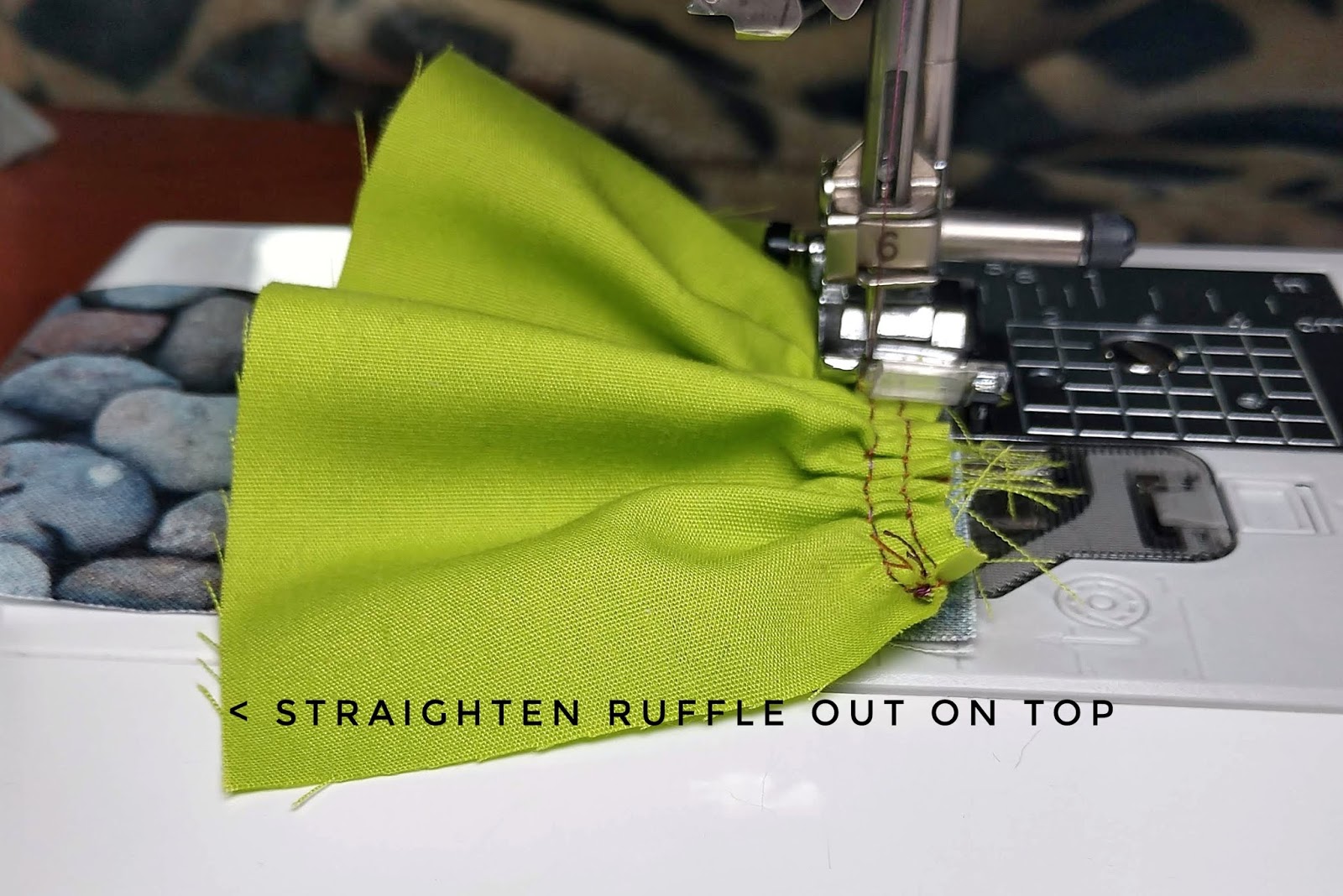 Yep, there is another one. Let’s figure this out. A sewing machine is a lot quicker than hand stitching, but it’s a lot harder to pull on to ruffle the fabric also. There are a few things that can be done to make this job just a little bit easier.