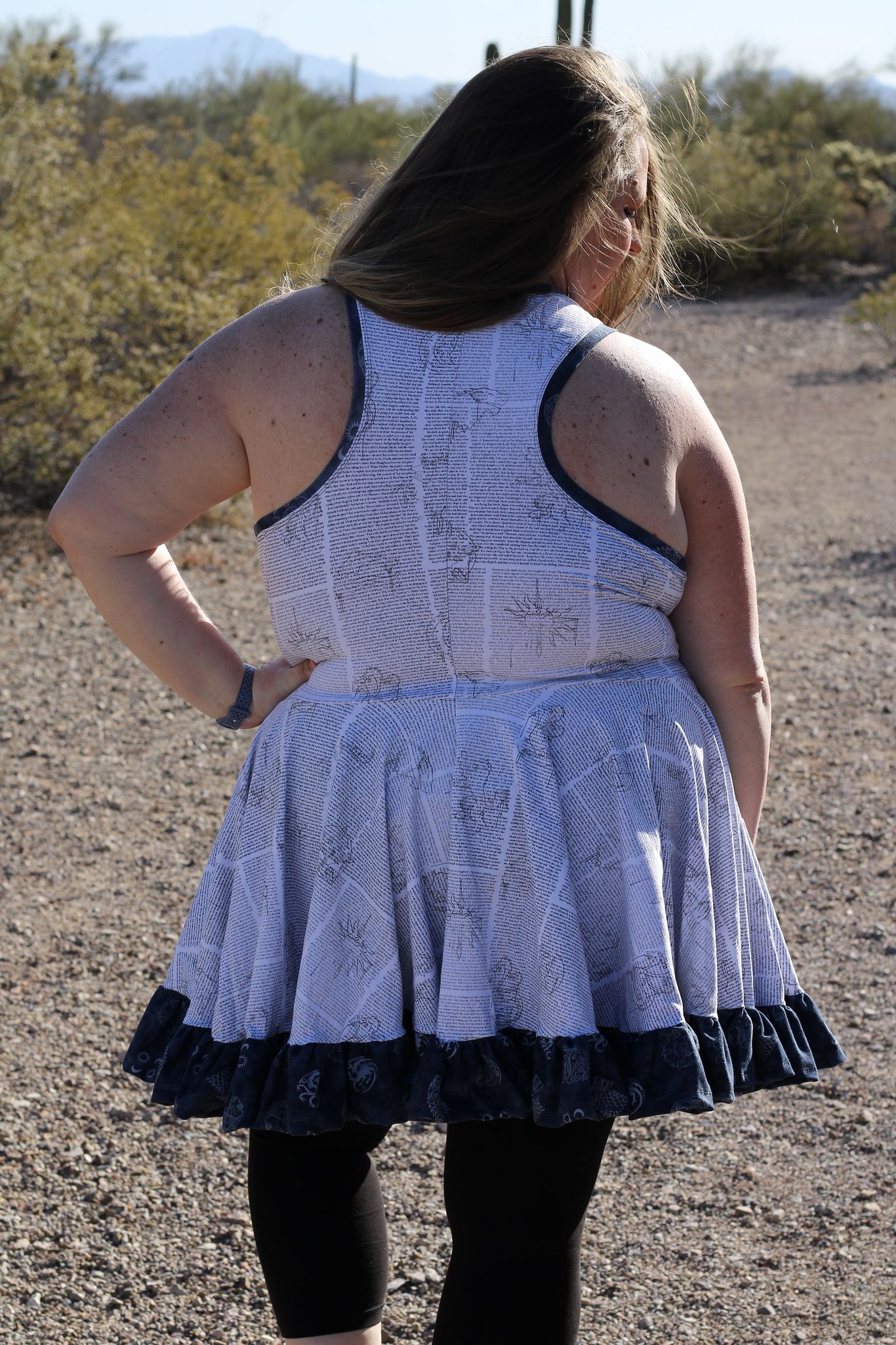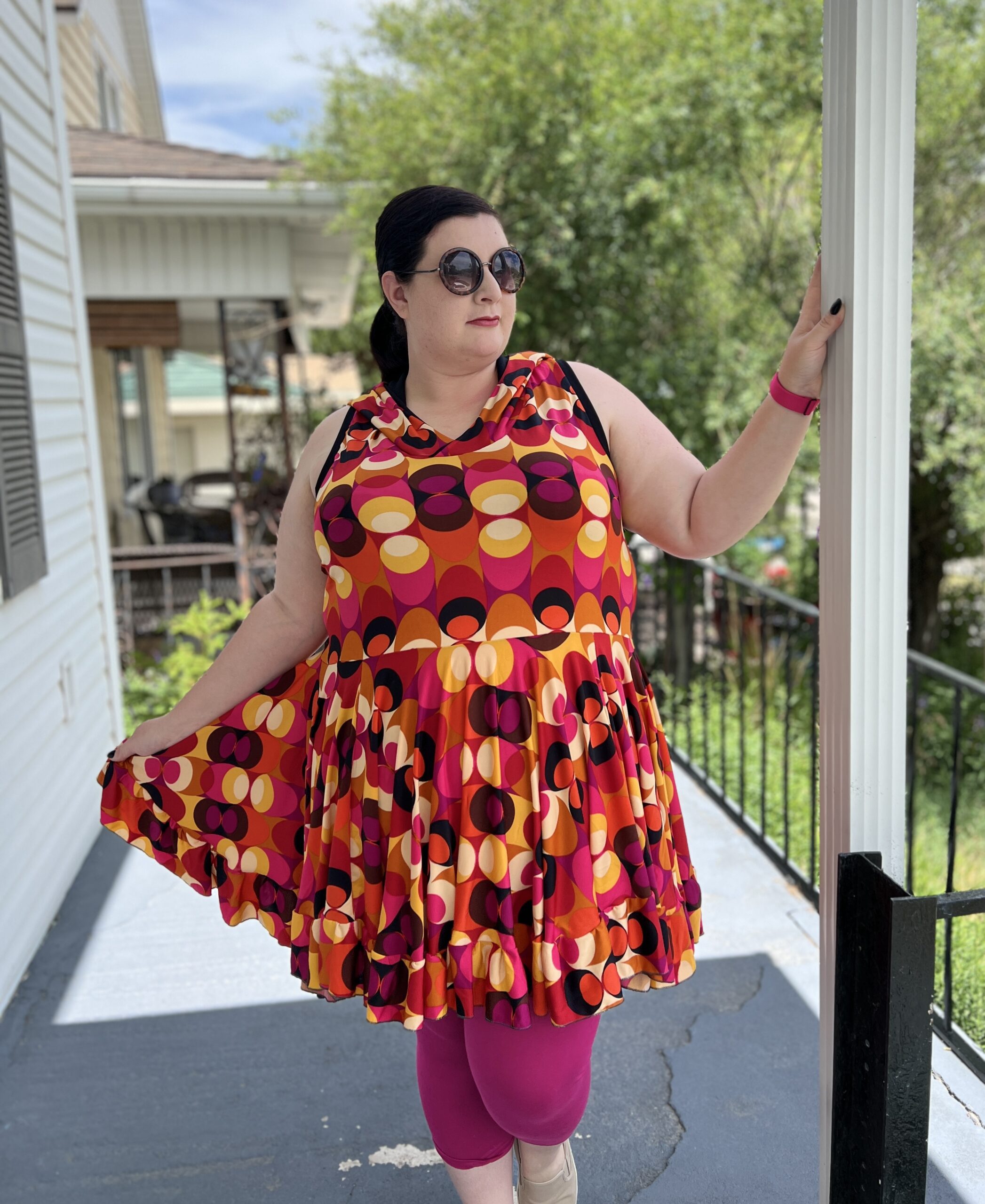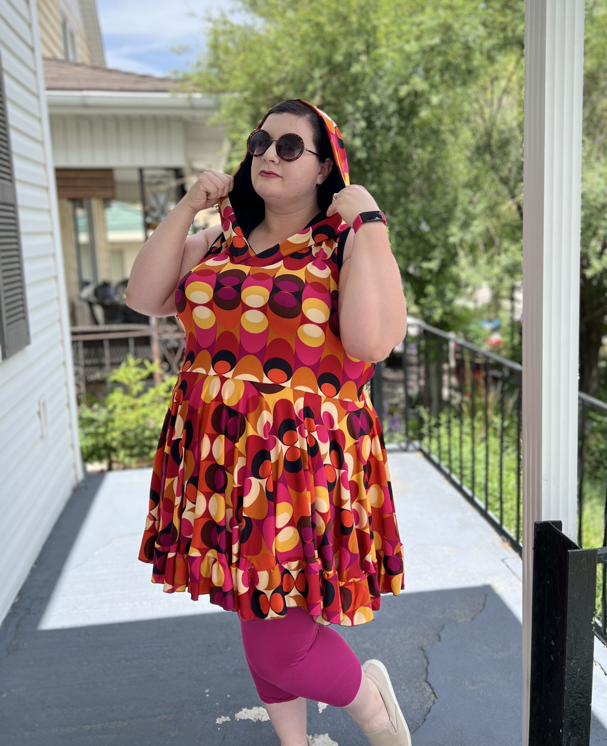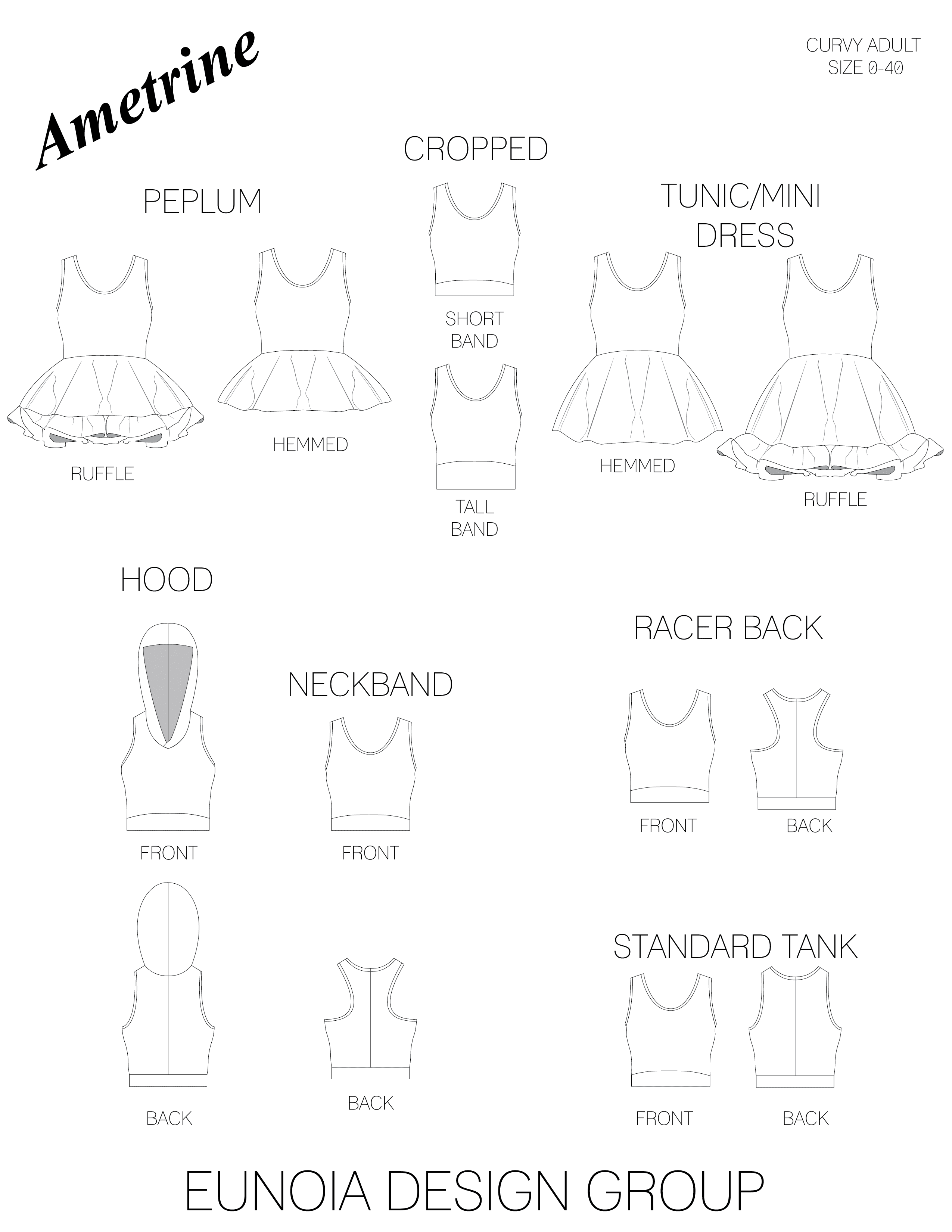 Ametrine is a variety of quartz that displays bands of both amethyst purple and citrine yellow. This is the top that displays two styles, sporty and flirty. Make a banded crop with a racer back to hit the court or use the standard back with the ruffled skirt and be ready for date night. And of course the hood that actually covers and isn’t just decorative!