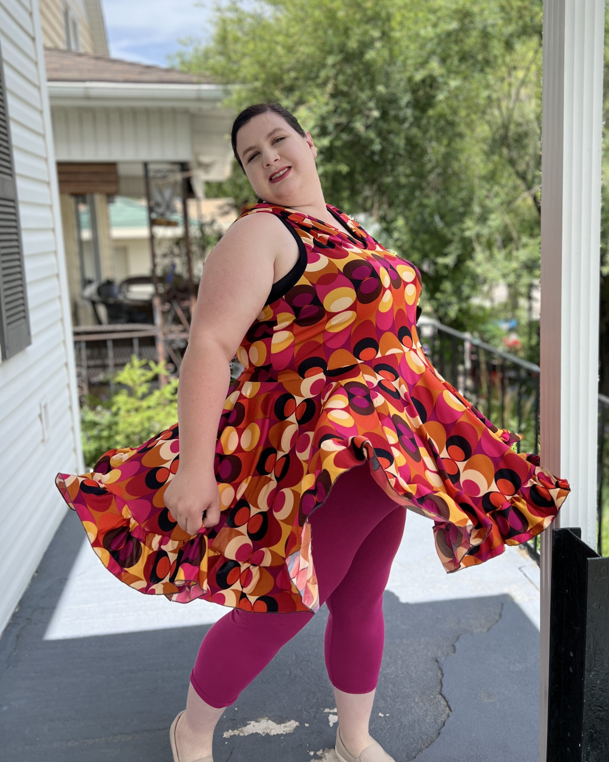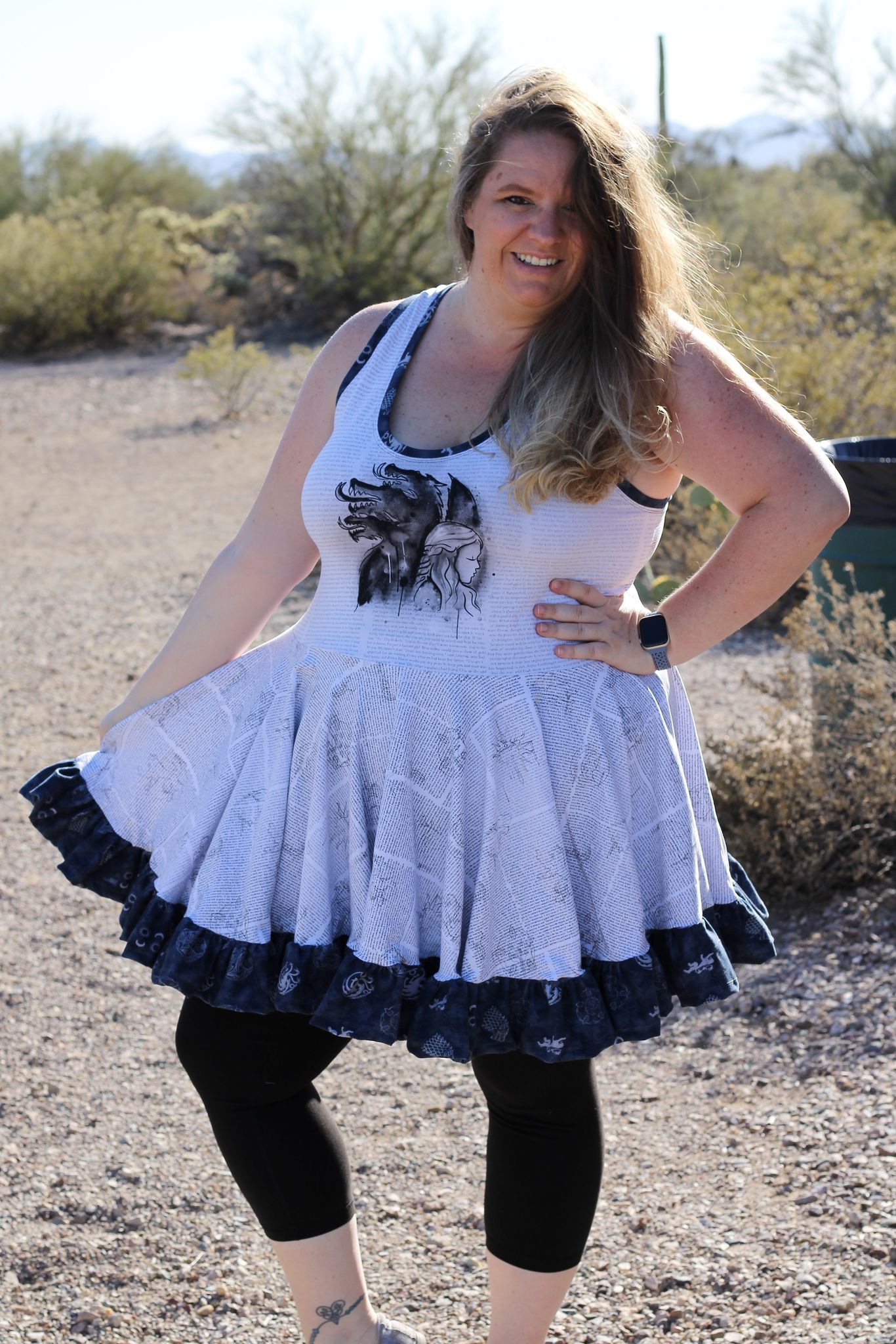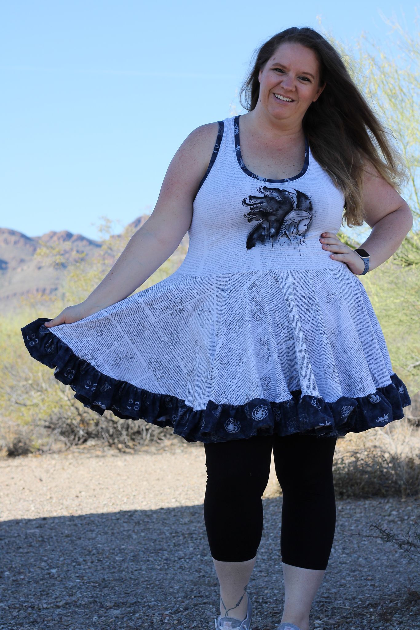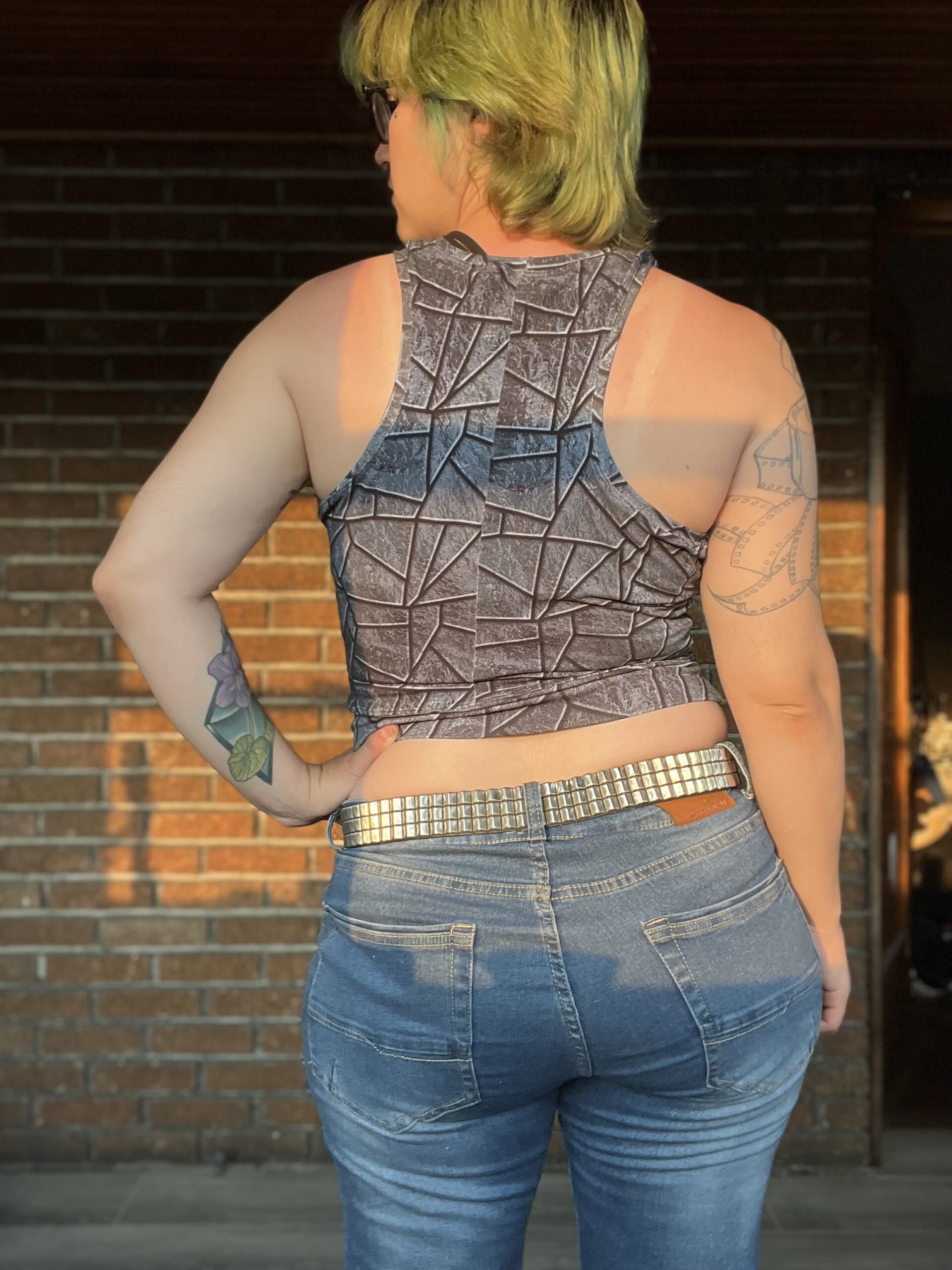 Ametrine is a variety of quartz that displays bands of both amethyst purple and citrine yellow. This is the top that displays two styles, sporty and flirty. Make a banded crop with a racer back to hit the court or use the standard back with the ruffled skirt and be ready for date night. And of course the hood that actually covers and isn’t just decorative!