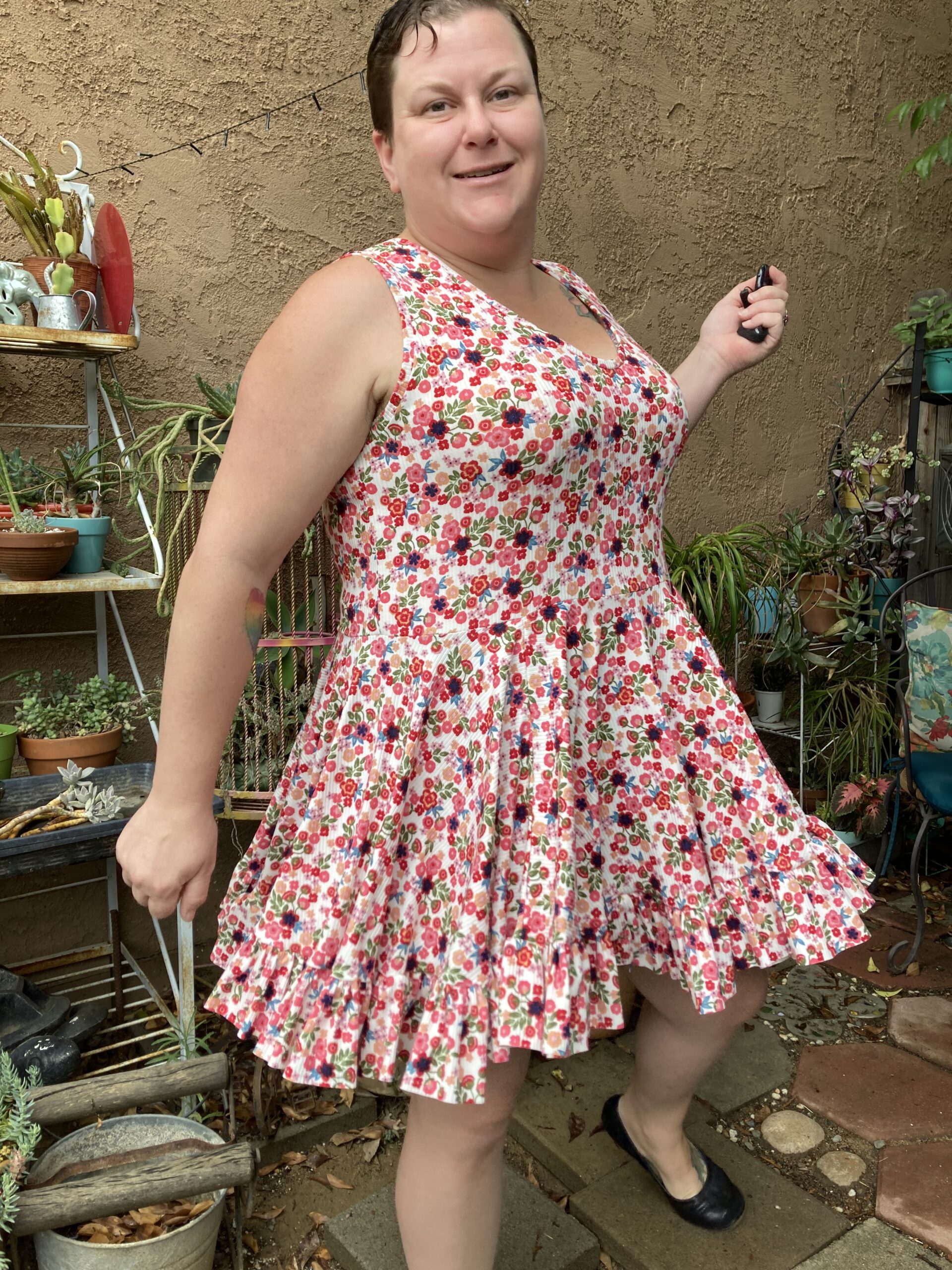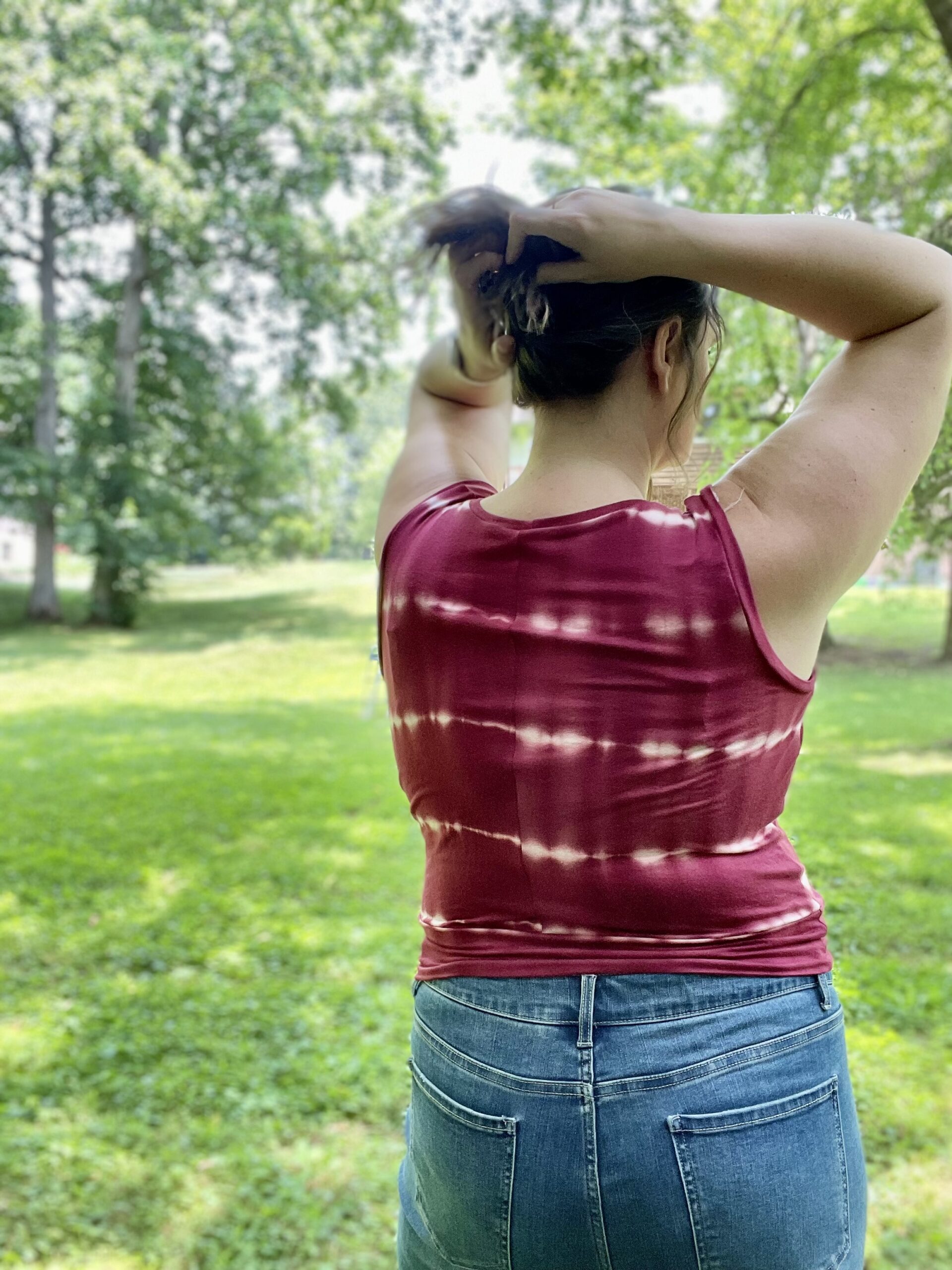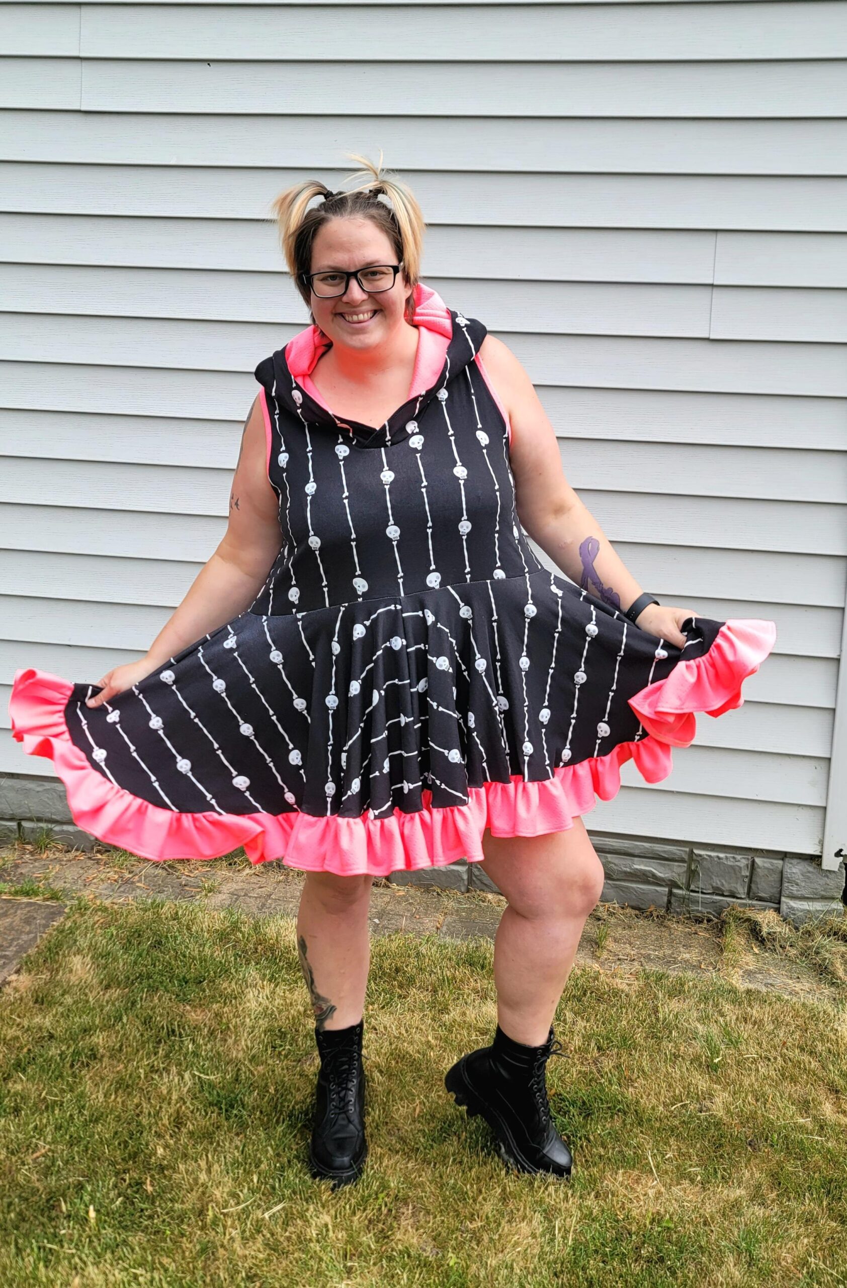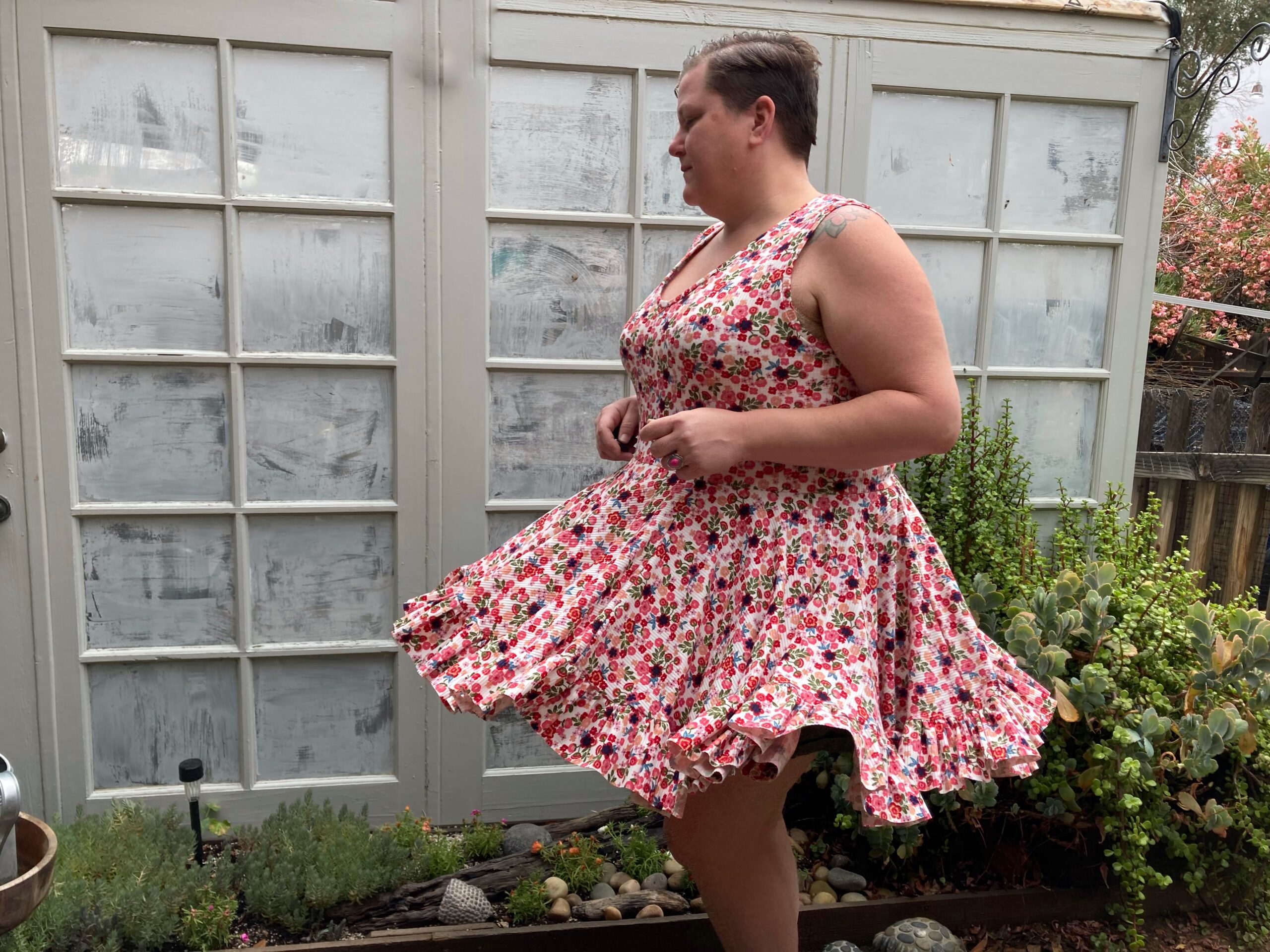 Ametrine is a variety of quartz that displays bands of both amethyst purple and citrine yellow. This is the top that displays two styles, sporty and flirty. Make a banded crop with a racer back to hit the court or use the standard back with the ruffled skirt and be ready for date night. And of course the hood that actually covers and isn’t just decorative!