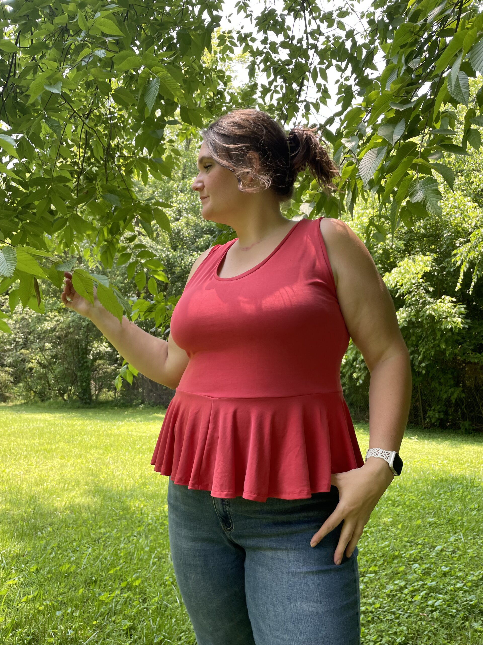 • Hemmed peplum or tunic