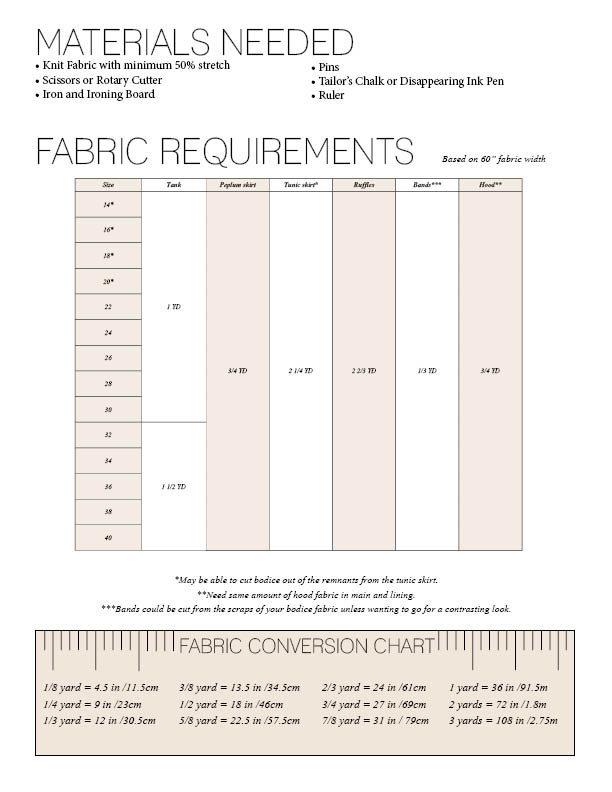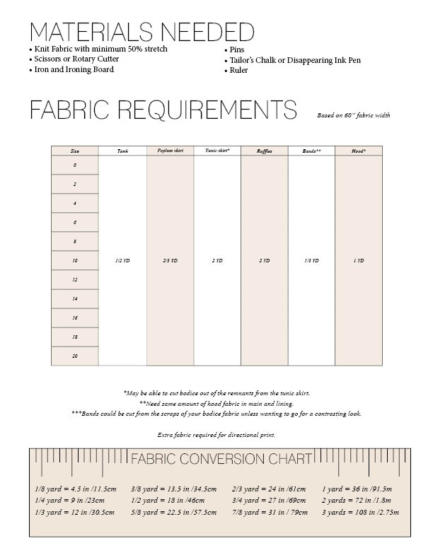 This pattern will keep you busy and busy and busy making every combination possible. Or get creative with your fabric choice. Fabric with at least 50% stretch horizontally is required but so many options fall into that category. Some favorite choices are Double Brushed Poly, Cotton spandex, and ITY. Or for a really fun spin, take it out in the water with swim or to the gym in an athletic knit.