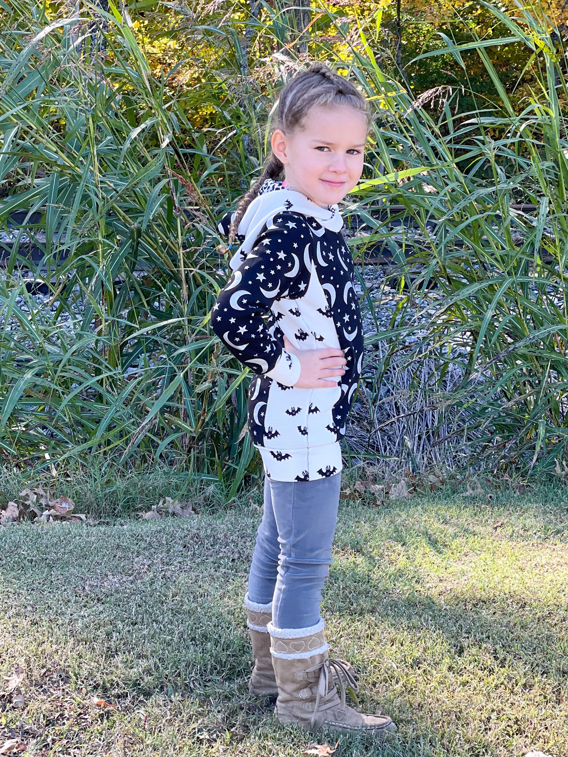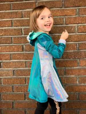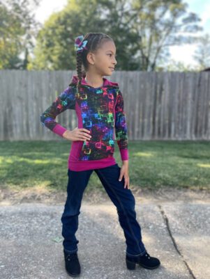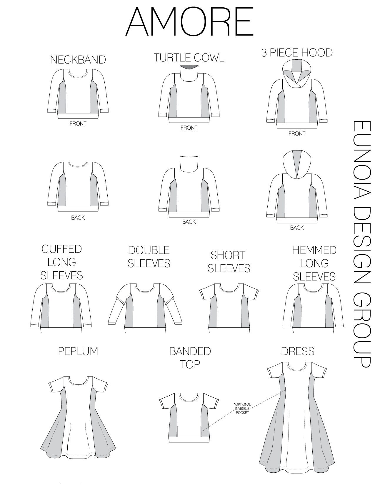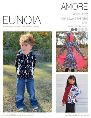 Amore, Italian for love, lives up to its name. Amore is a knit top, peplum or dress your youth needs in their life! Go with a classic neckband or switch it up for a more dressy cowl or the show stopping 3-piece hood! Throw a hood on everything. And the unique pocket that is hidden in the front bodice will be the envy of the block.