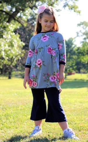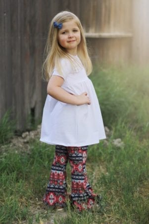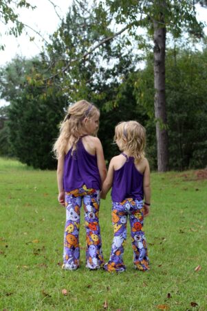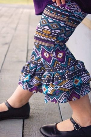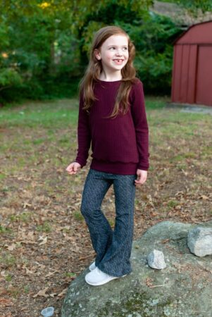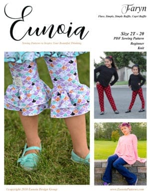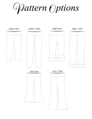 Designed to be fitted in the waist and hips, but more relaxed in the legs than most leggings, Faryn is the perfect addition to your pattern collection. Faryn comes with both simple and flare legged, both having capri and long options; and don’t forget the ruffles! Seriously a PERFECT piece for every wardrobe, a staple. Dress them up or down, not to mention, they are SO quick and easy to sew up!