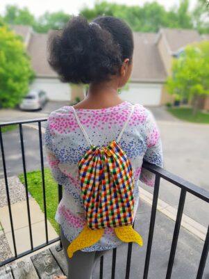 One of the goals of LSS patterns is to help a child work through a pattern from start to finish as independently of you as possible. Only you know your child’s skill level and safety is always paramount. We have, however, included this symbol, with instruction, in the pattern to remind a child to stop and check for help with that step if necessary – things like ironing and cutting etc.