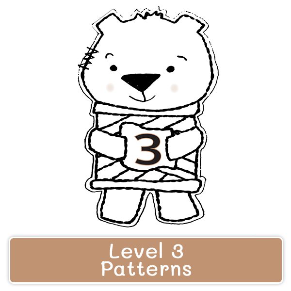 In addition to step pictures, like most PDF patterns. we have also included step-by-step video instruction geared towards the child listener. Additionally, all of our Level 1-3 patterns have a read along slide show specifically geared towards pre-readers.