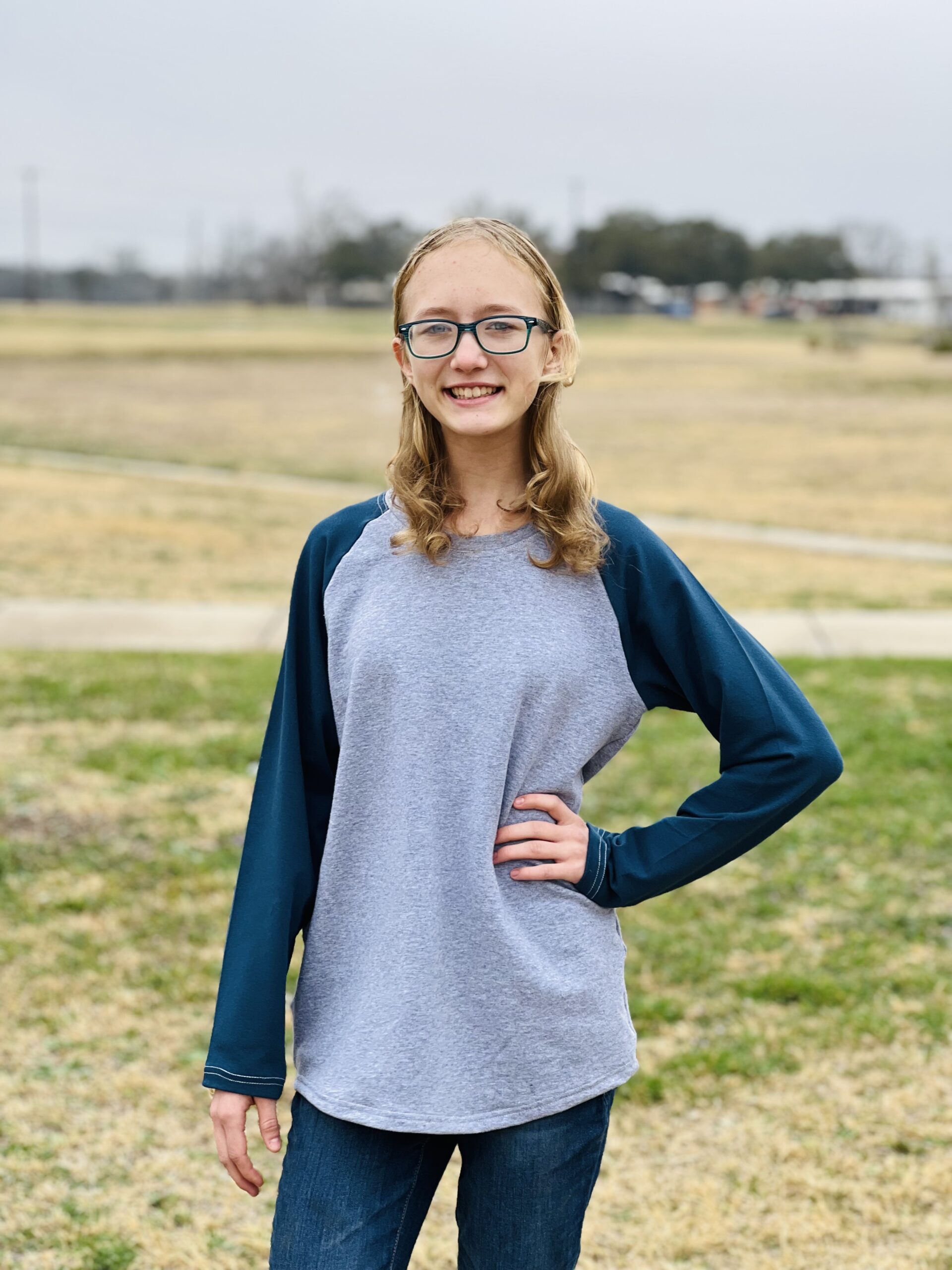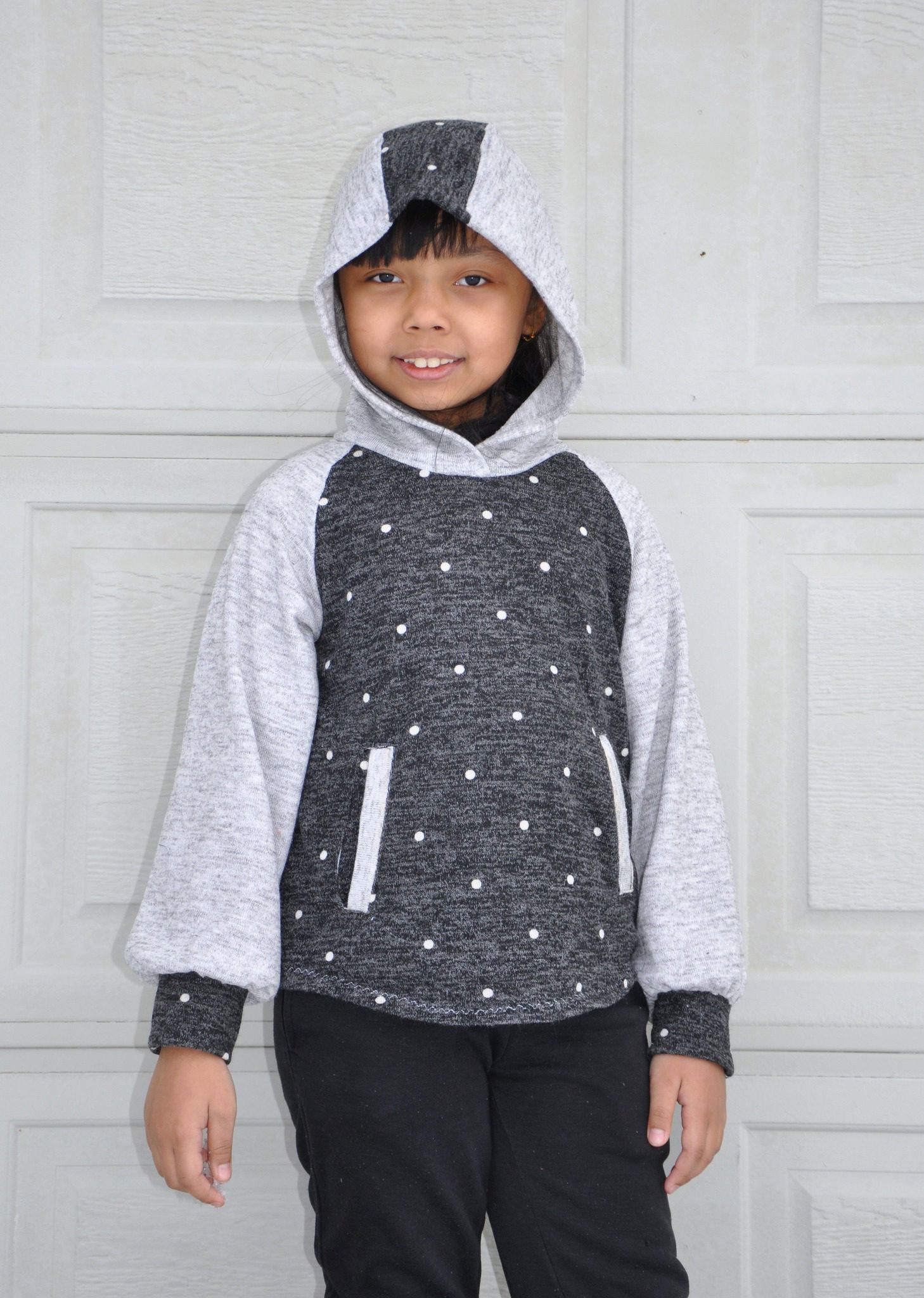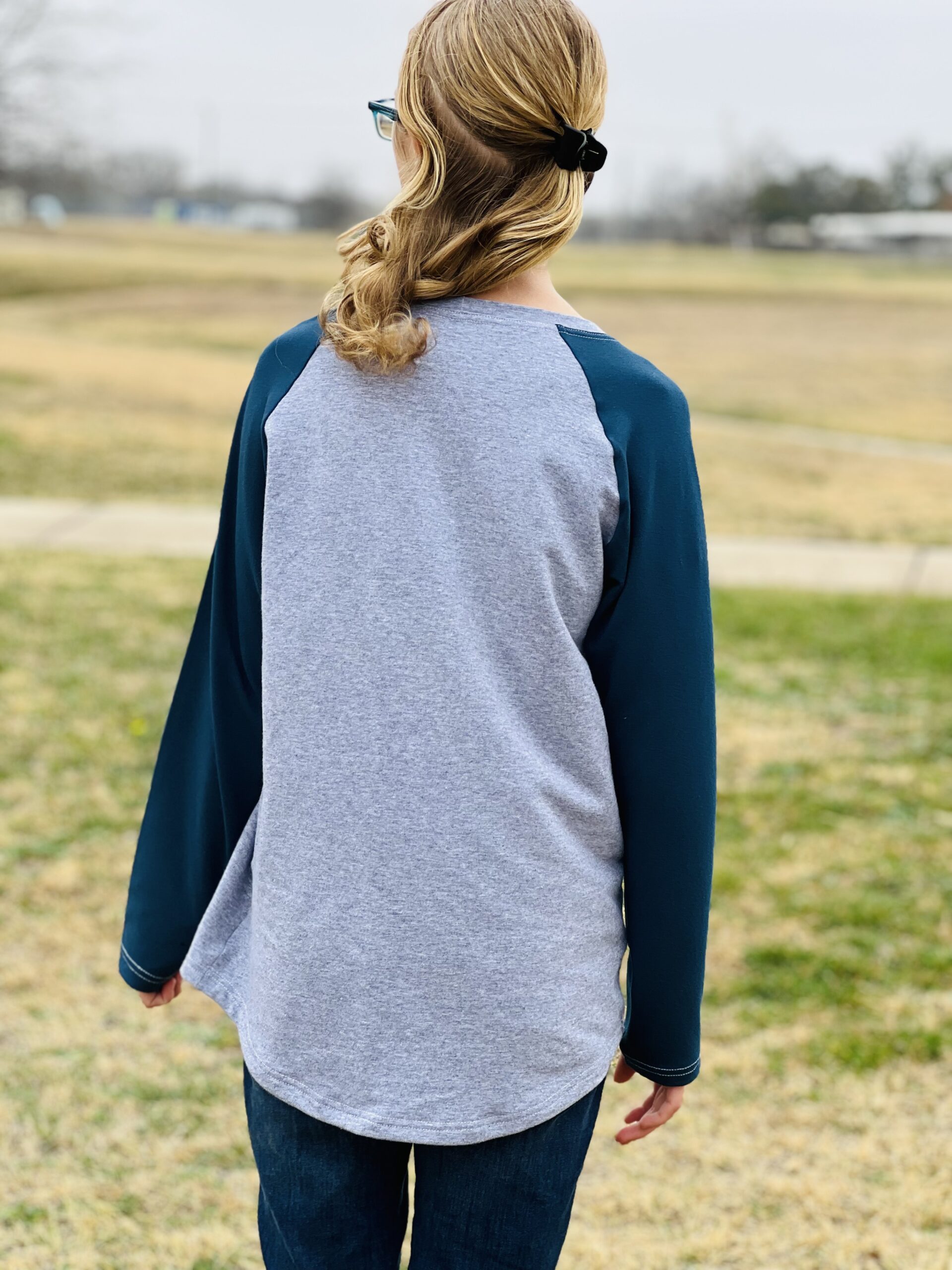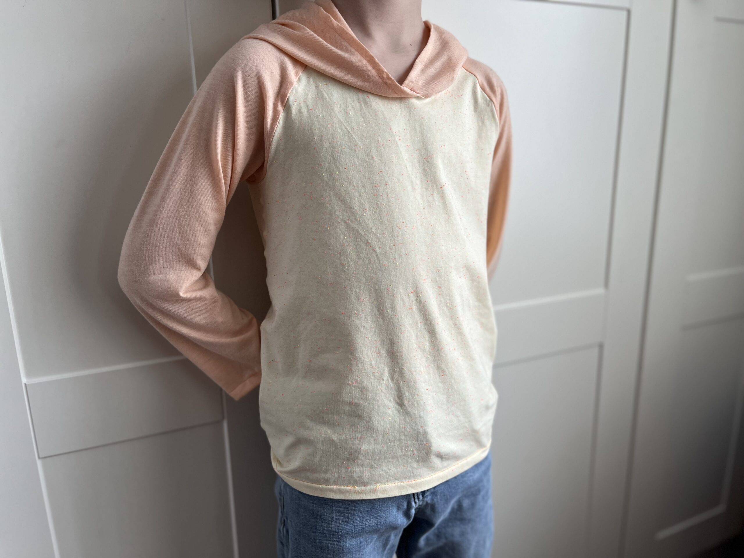 A raglan shirt with lots of possibilities. You can make a simple raglan t-shirt and play with color and prints. If you want a little something extra you can add a gathering on the raglan seam.