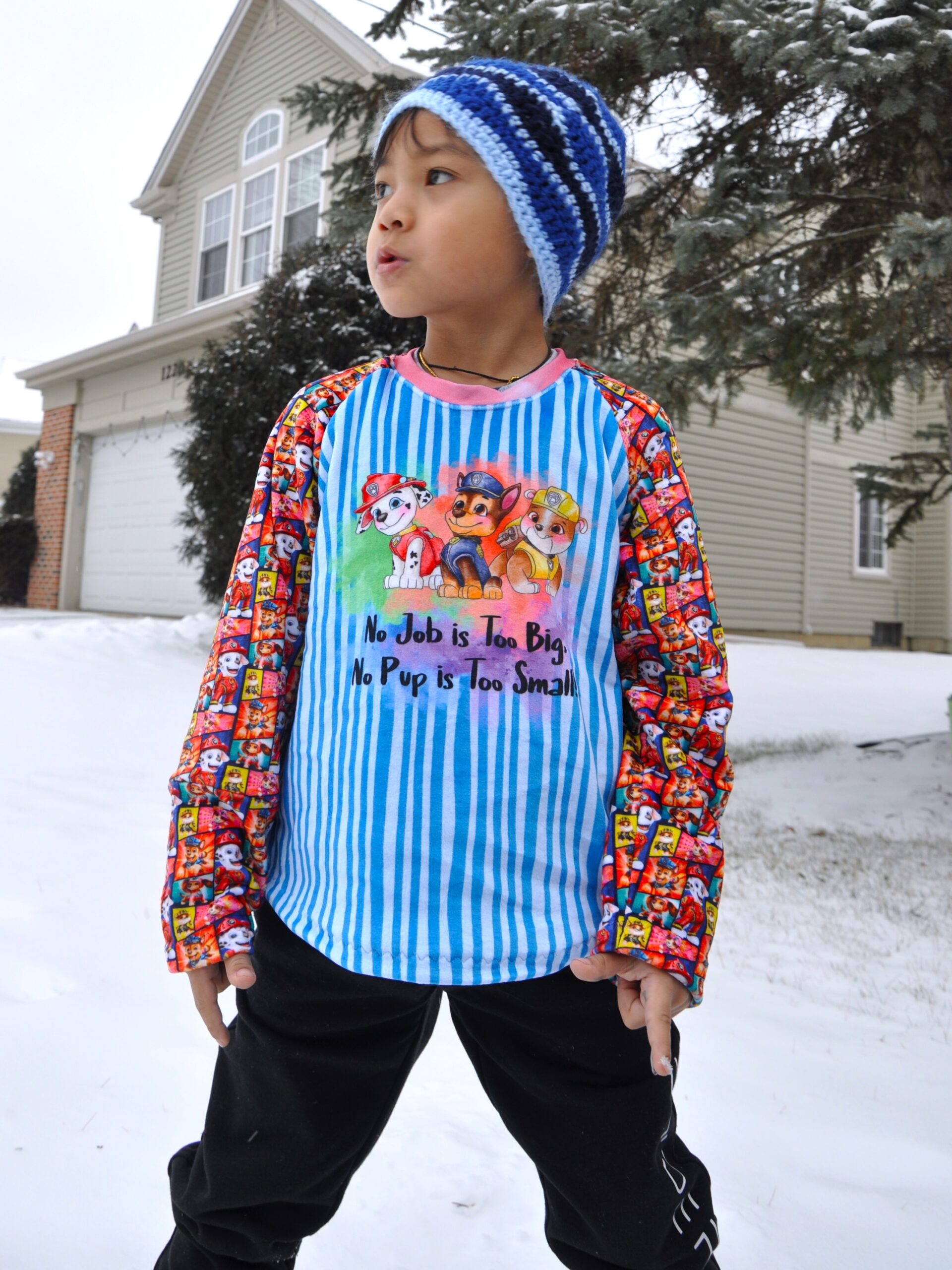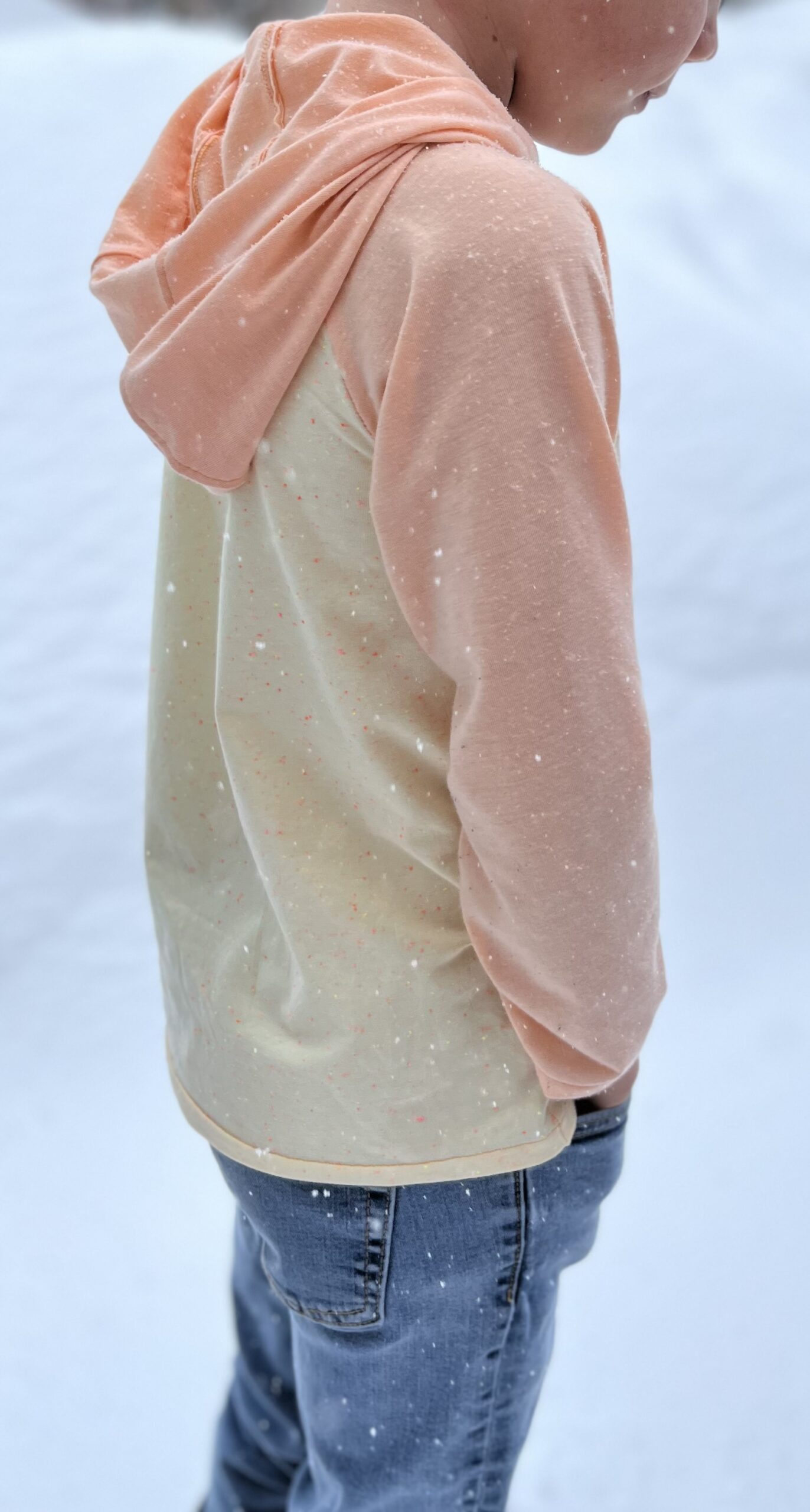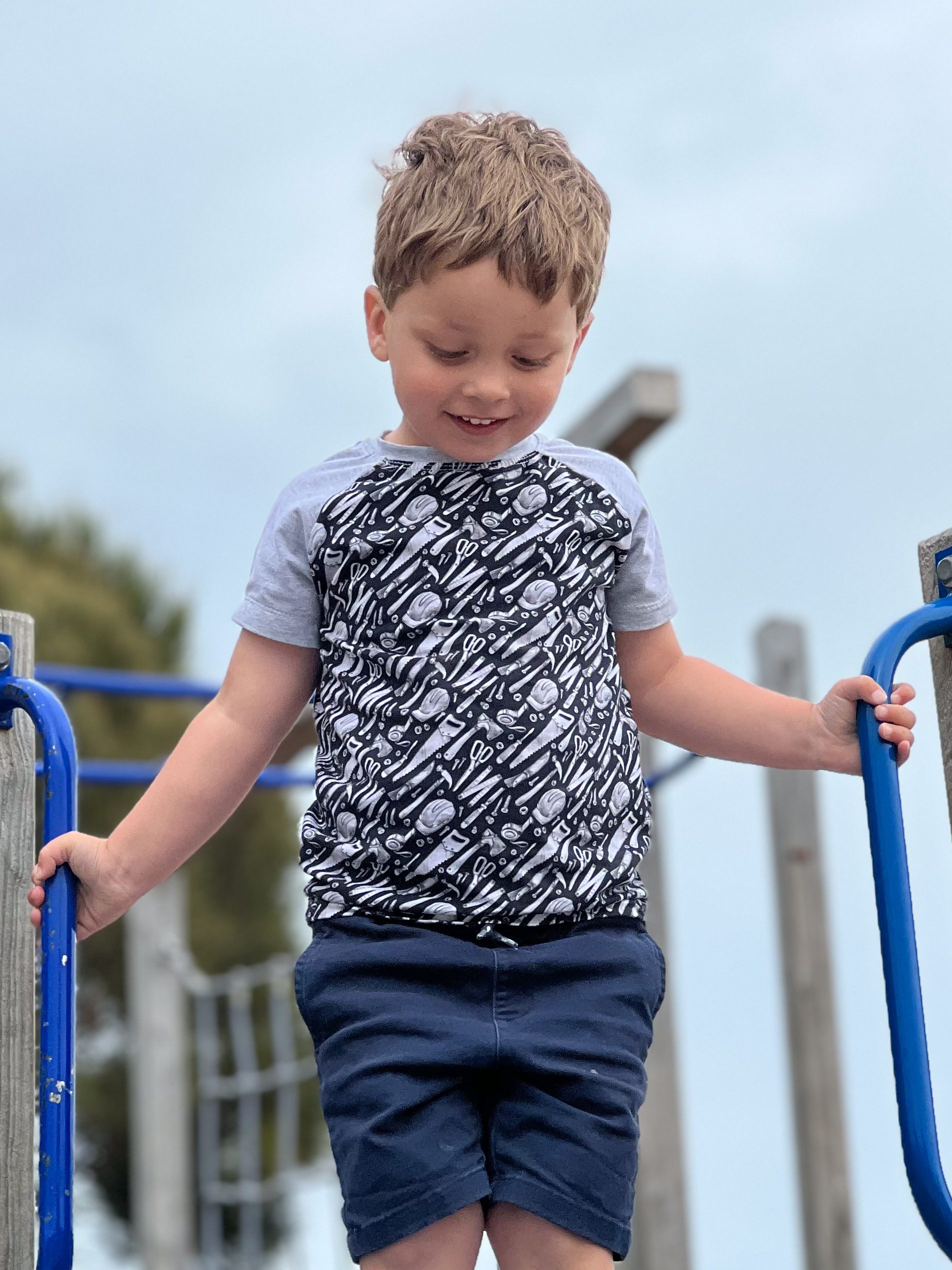 A raglan shirt with lots of possibilities. You can make a simple raglan t-shirt and play with color and prints. If you want a little something extra you can add a gathering on the raglan seam.