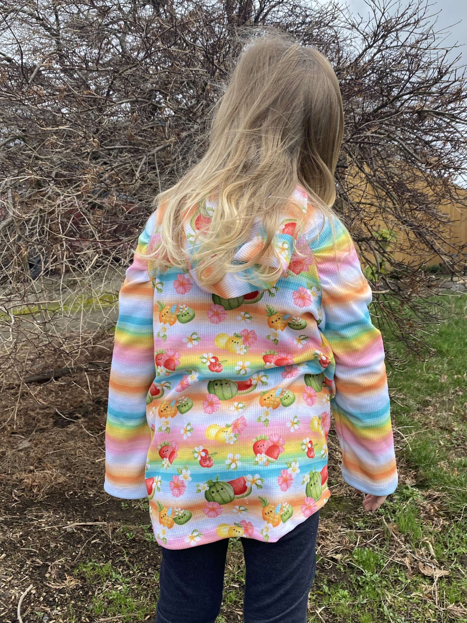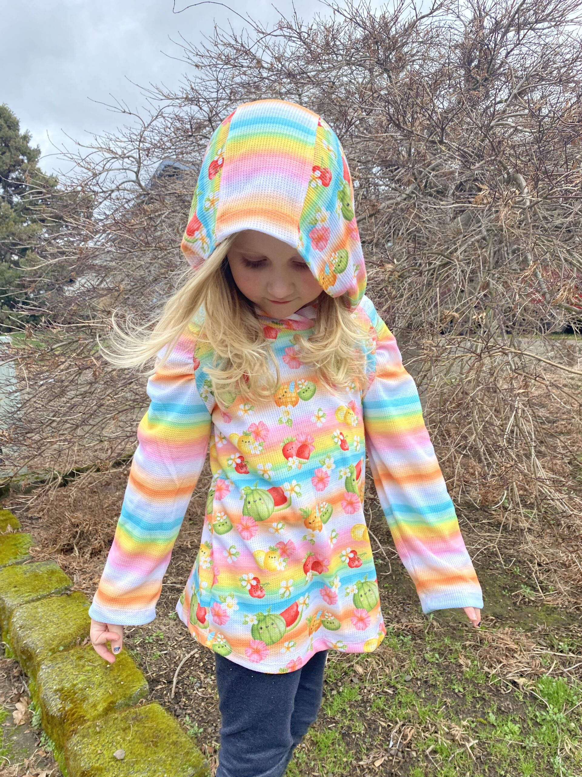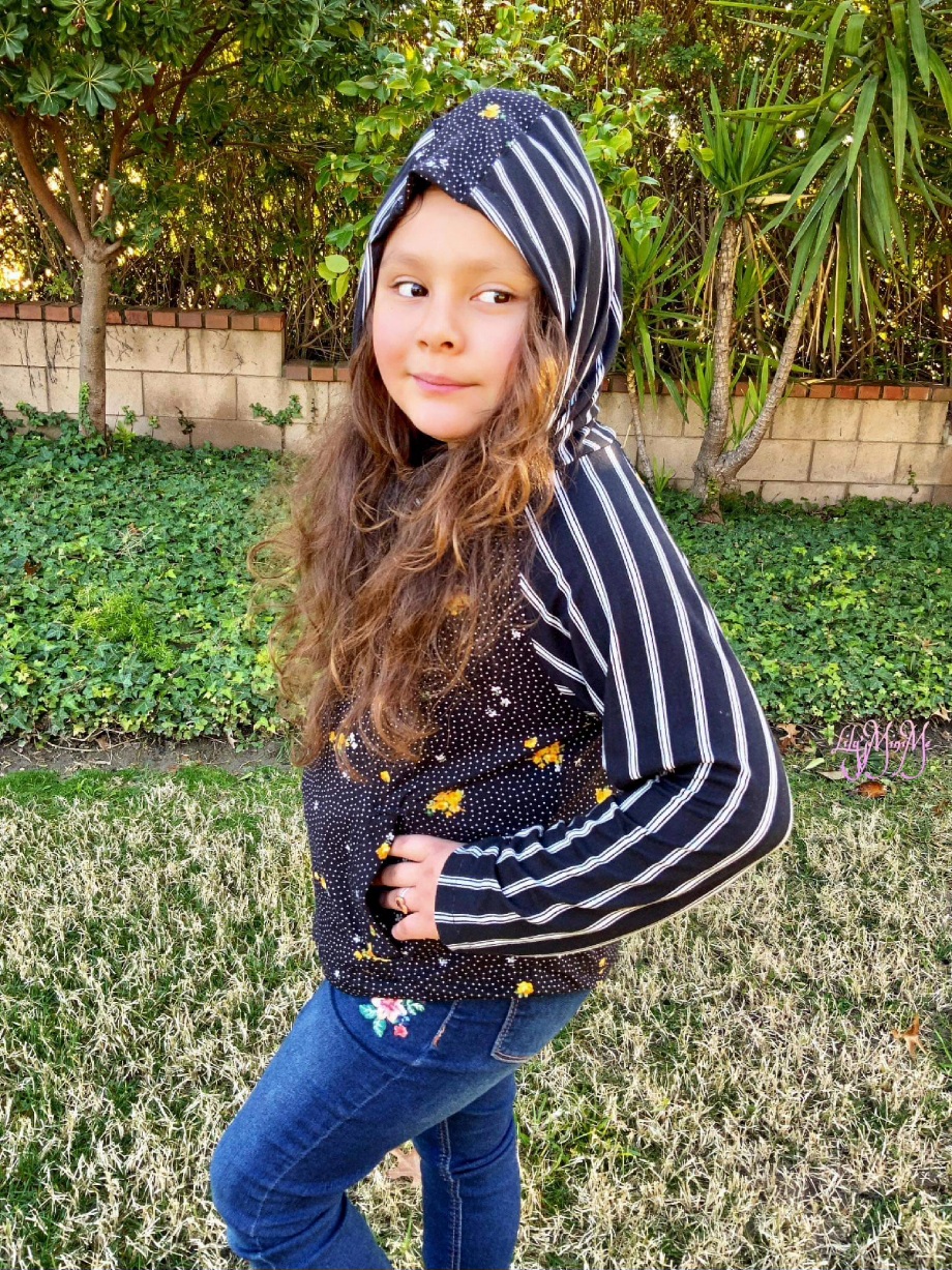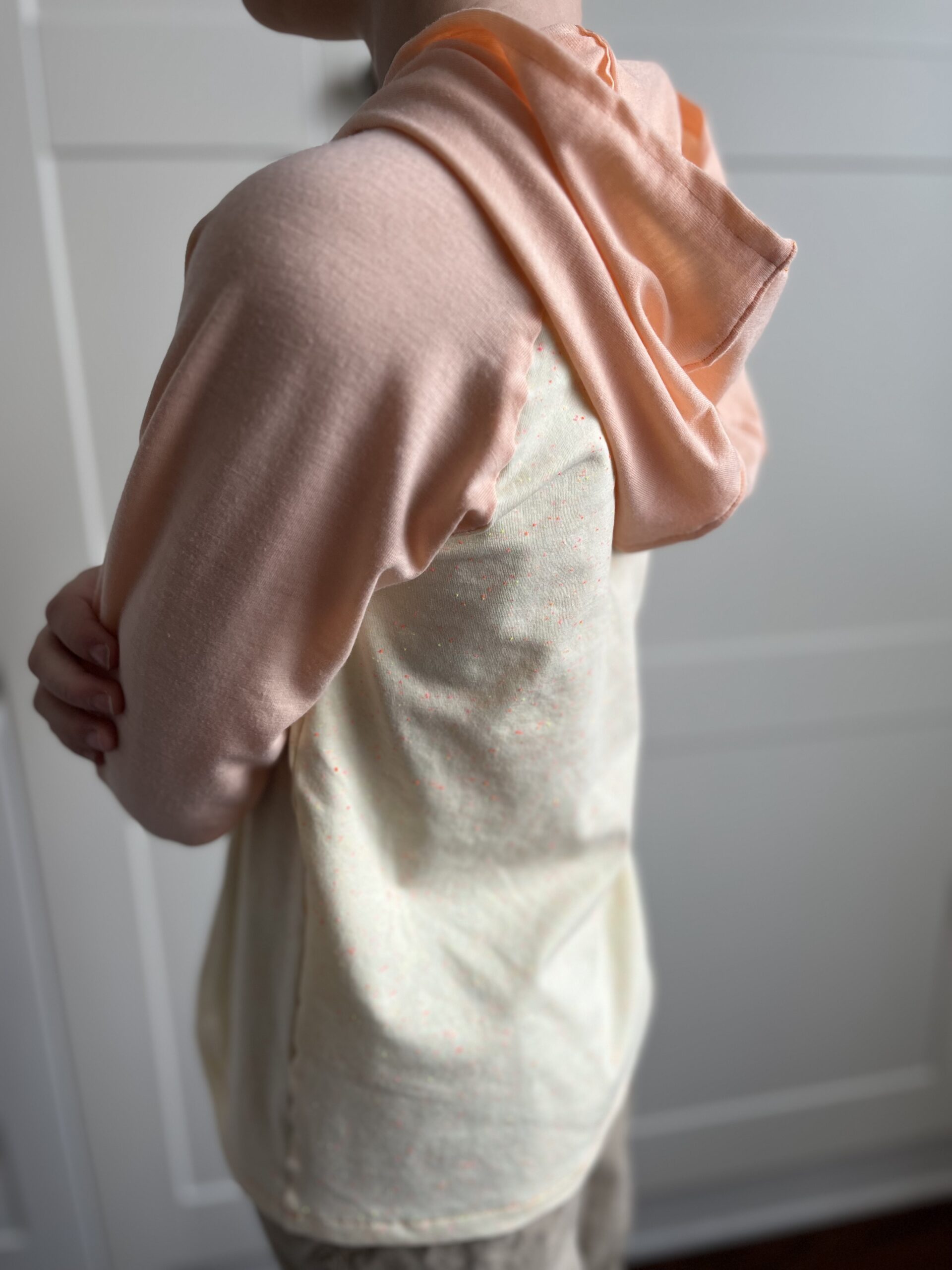 A raglan shirt with lots of possibilities. You can make a simple raglan t-shirt and play with color and prints. If you want a little something extra you can add a gathering on the raglan seam.