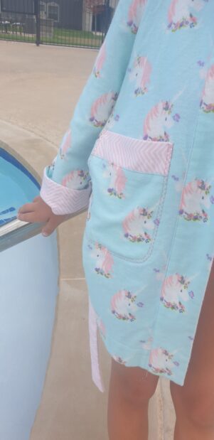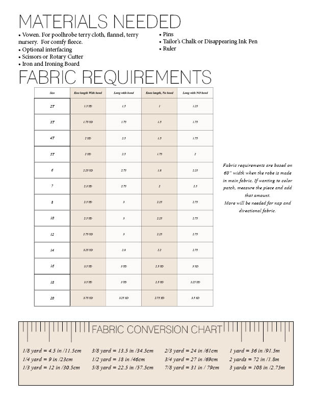 If you use terry cloth you will get a very nice pool robe, if you use fleece you will get an amazingly comfy bathrobe, flannel and you can get a jacket.