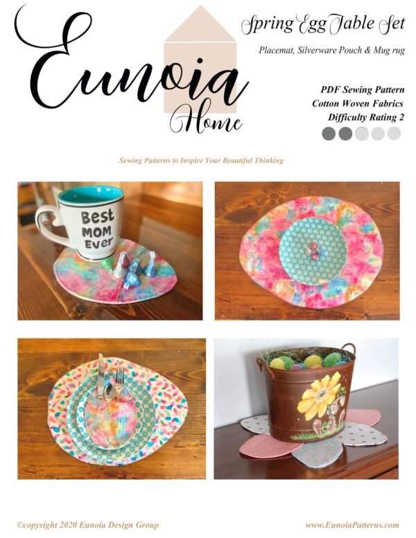 Welcome in spring with this egg-cellent and versatile pattern! A perfect scrap-buster, you can sew up a placemat, flatware pouch, or a mug rug. There are so many ways to make these eggs as unique as you!