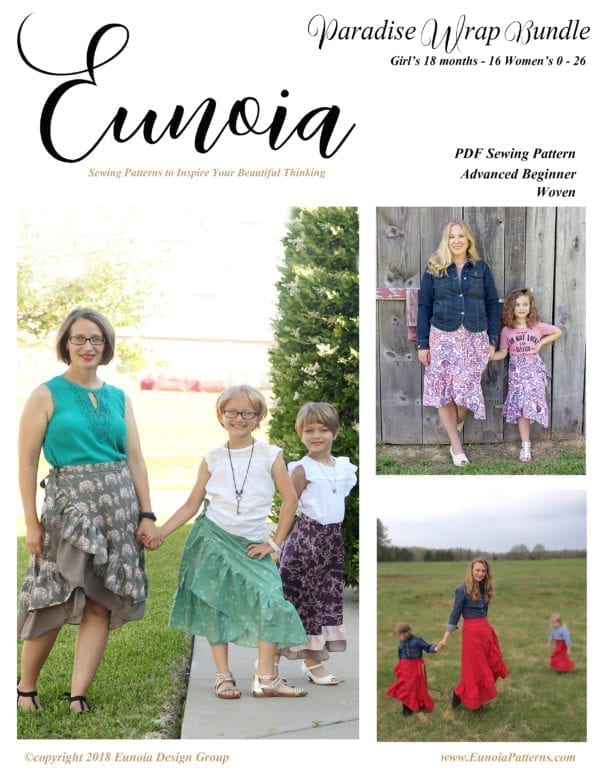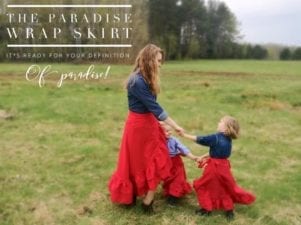 No matter what you consider paradise, the beach or the mountains, the Paradise Wrap Skirt is that versatile must have in your clothing collection.  This great skirt pattern comes in Mini, Midi and Long lengths with a main ruffle and optional 2nd ruffle layer.