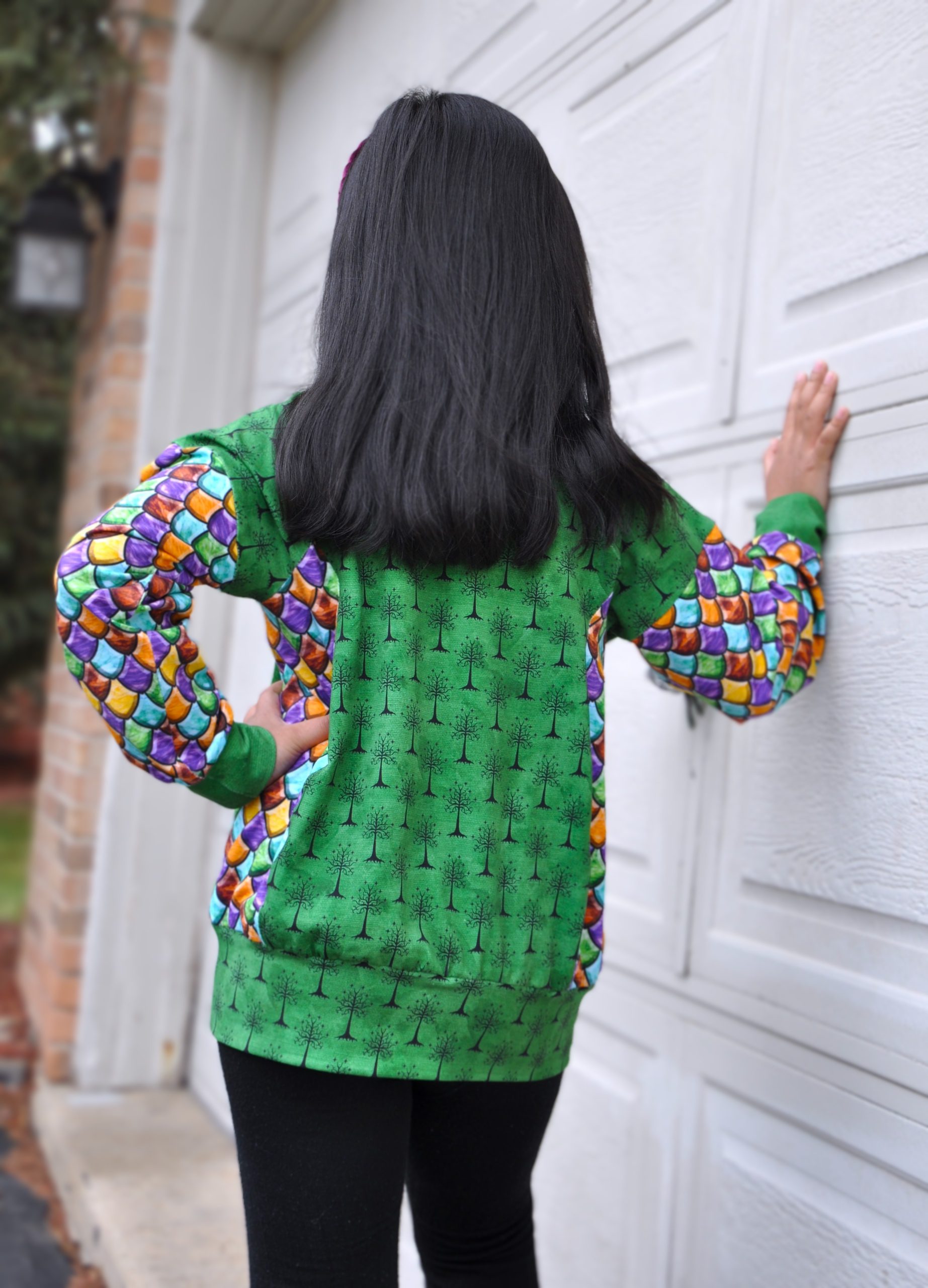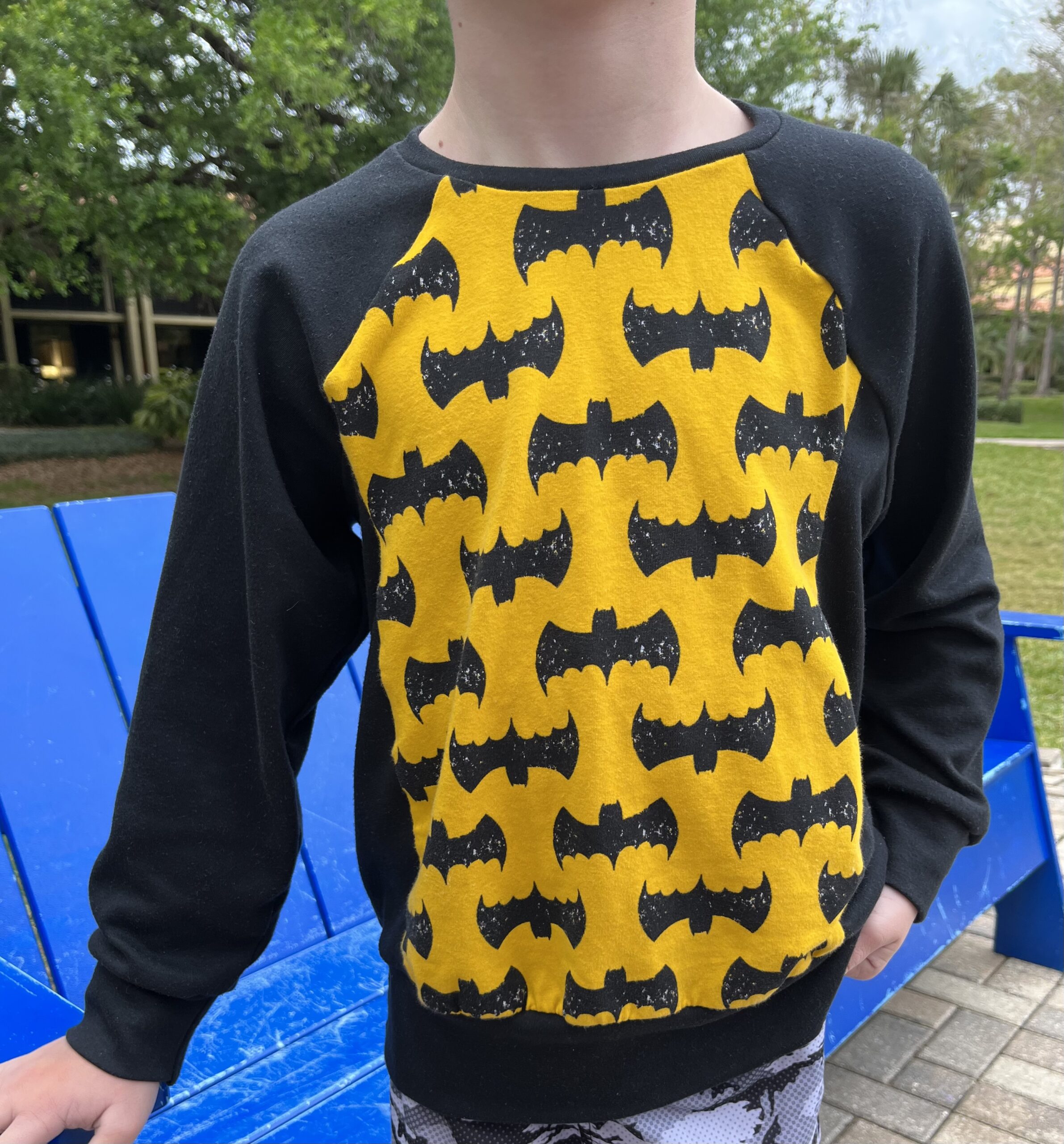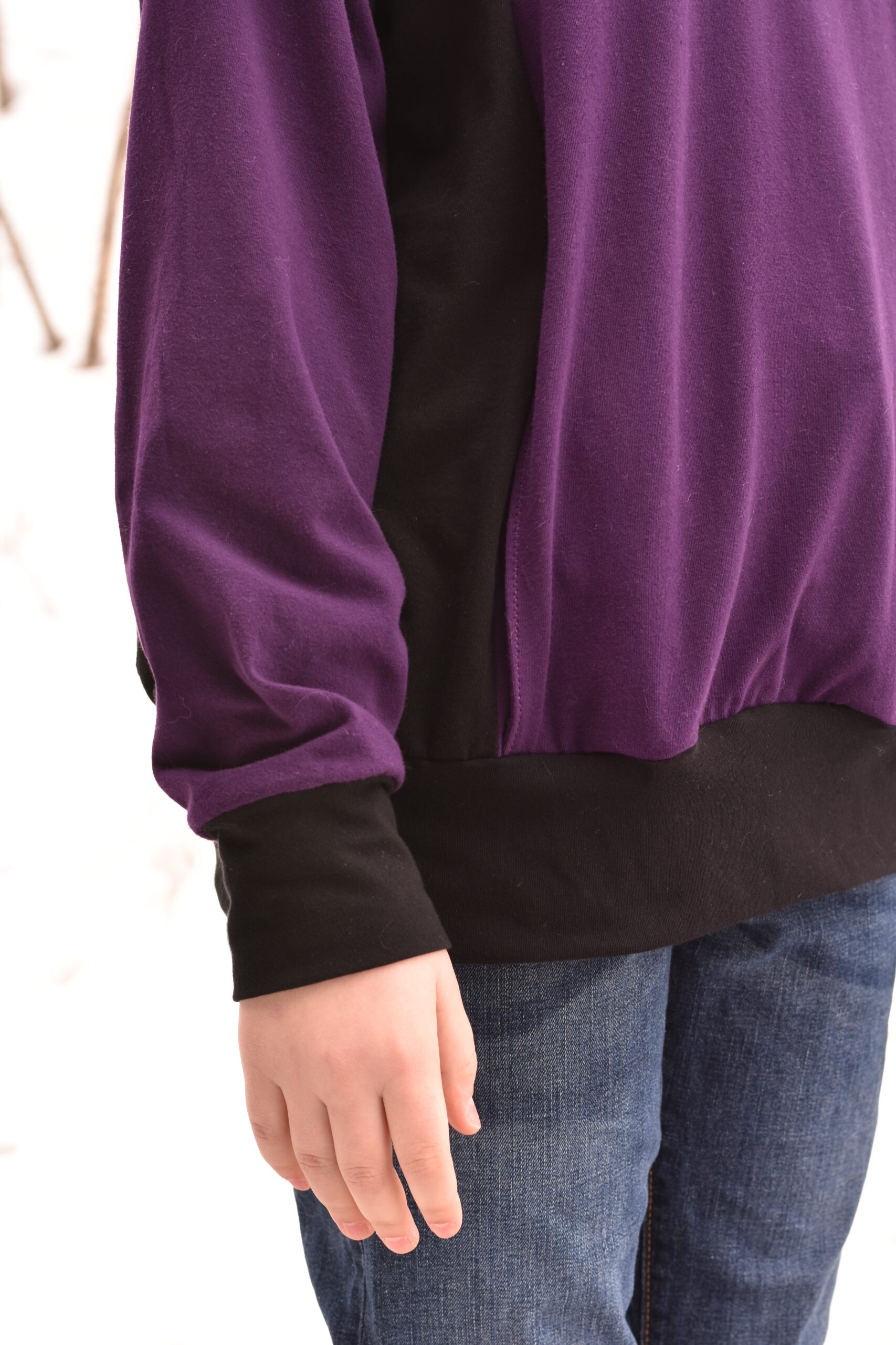 In addition to the loose side, Youth Voyage includes raglan sleeves. Two favorites are short or long sleeves both with cuffs. Or layer the two sleeves for a cool layered looked. Or really go for scrap busting fun and do a 2 piece sleeve!