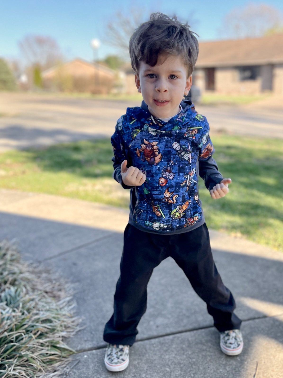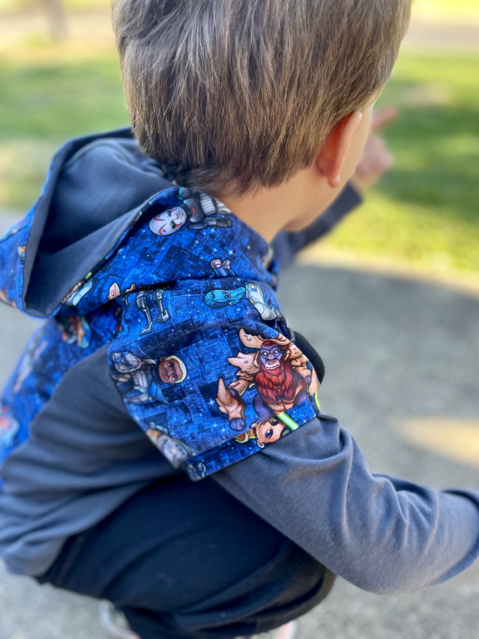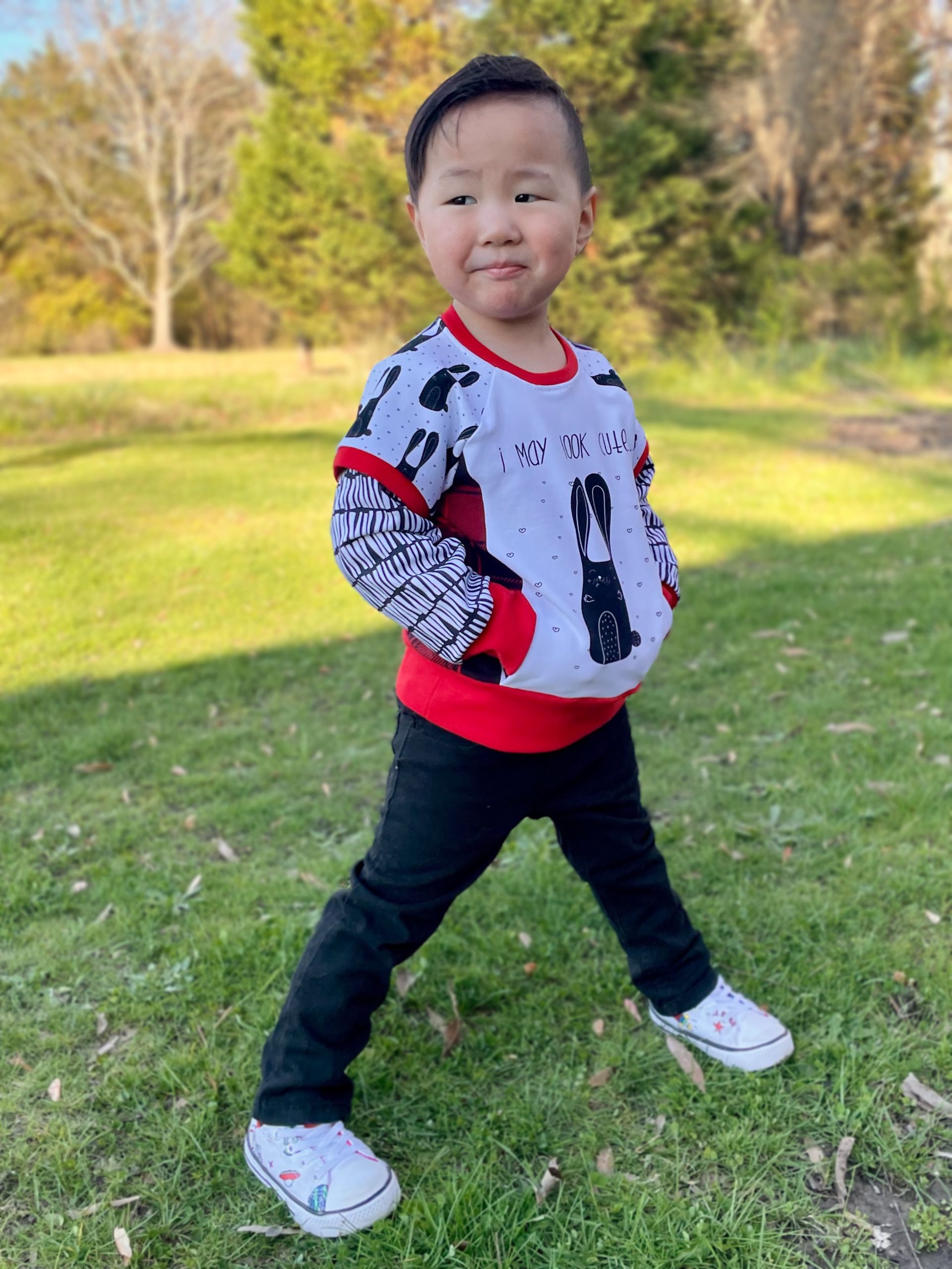 In addition to the loose side, Youth Voyage includes raglan sleeves. Two favorites are short or long sleeves both with cuffs. Or layer the two sleeves for a cool layered looked. Or really go for scrap busting fun and do a 2 piece sleeve!